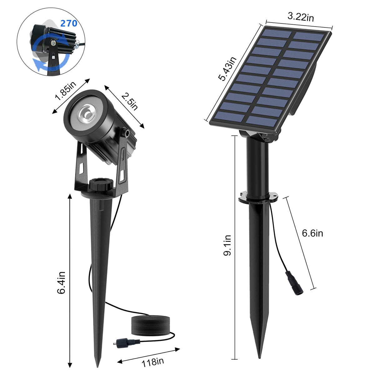 - **High-Efficiency Solar Panel**: Equipped with a poly-crystalline solar panel that boasts up to 20% solar energy conversion efficiency, these spotlights can provide over 8-9 hours of illumination after just 6-8 hours of full charging.