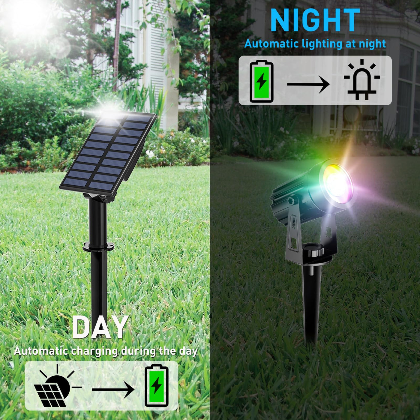 - **Durable and Weather-Resistant**: With an IP65 waterproof rating, these solar spotlights are built to withstand rain, snow, and dust, making them a durable choice for year-round outdoor use. Perfect for illuminating gardens, patios, driveways, stairs, and pool areas without worry.