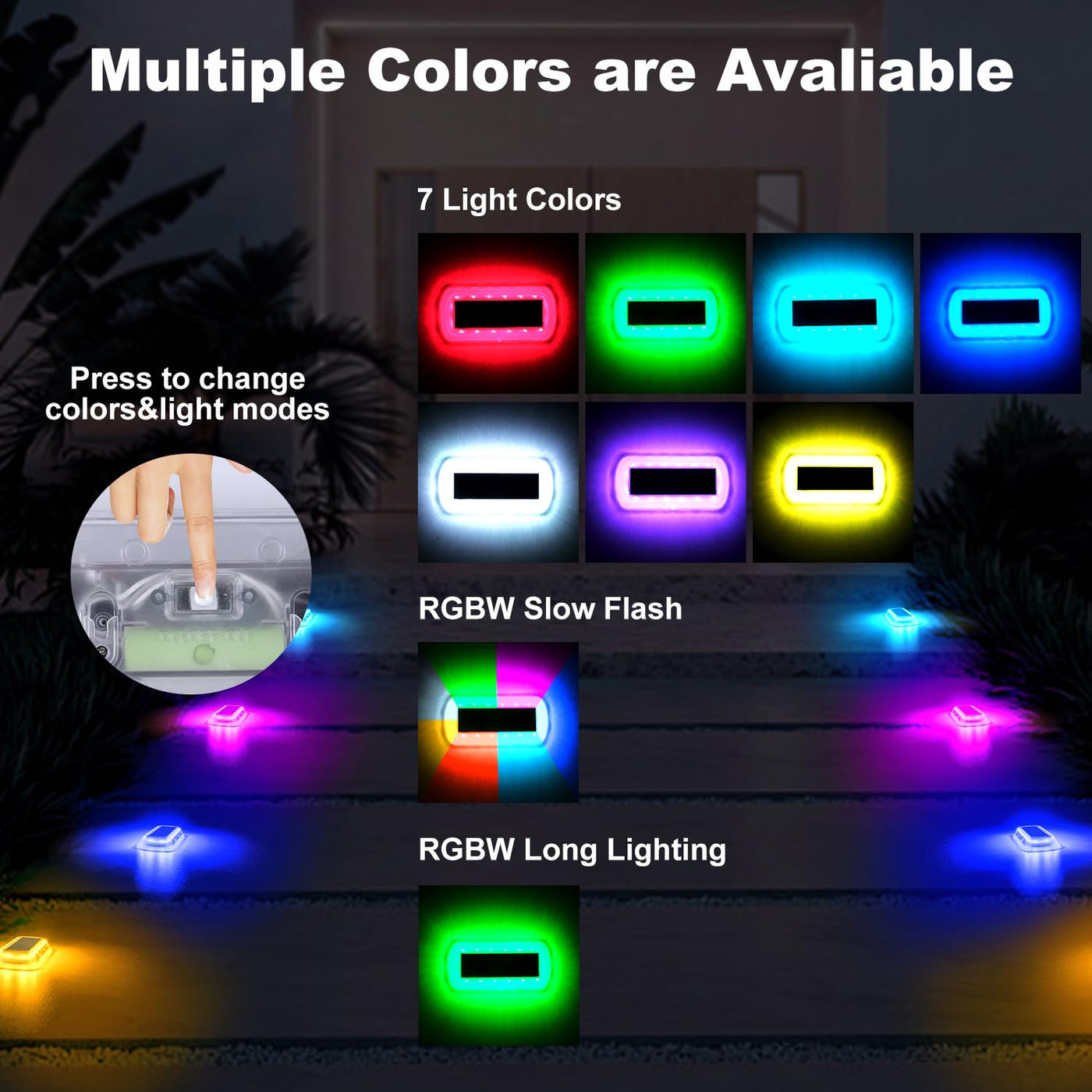 T-Sun Rgb Solar Step Lights For Outside,7 Colors Stair Lights Outdoor Waterproof Led Deck Lights 2 Lighting Modes, Solar Front P