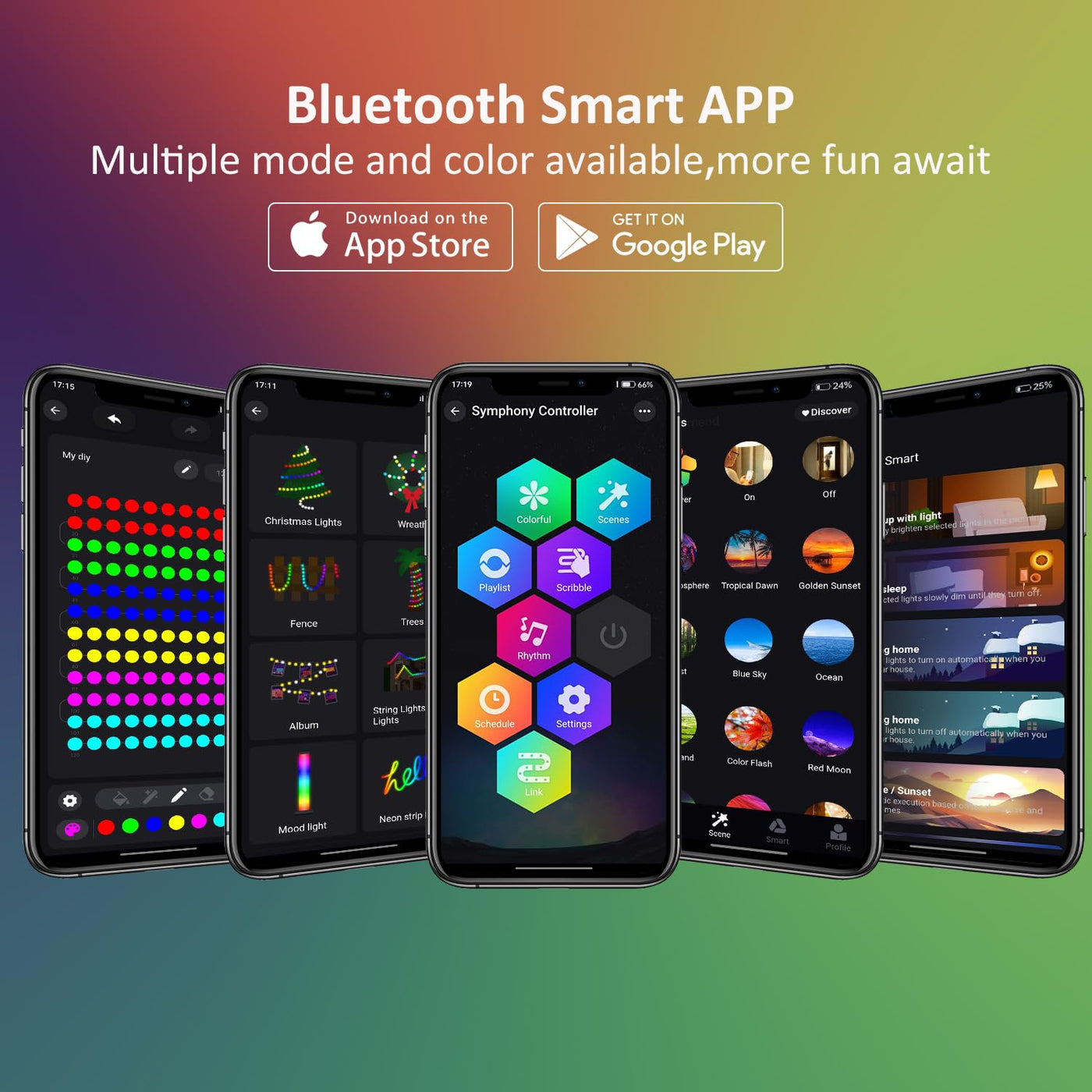 - **Remote & APP Control**: Enjoy the convenience of control from a distance with a remote and Bluetooth APP. Set timers, adjust modes, and synchronize the lighting with your music, making it ideal for festive celebrations or relaxing nights.
