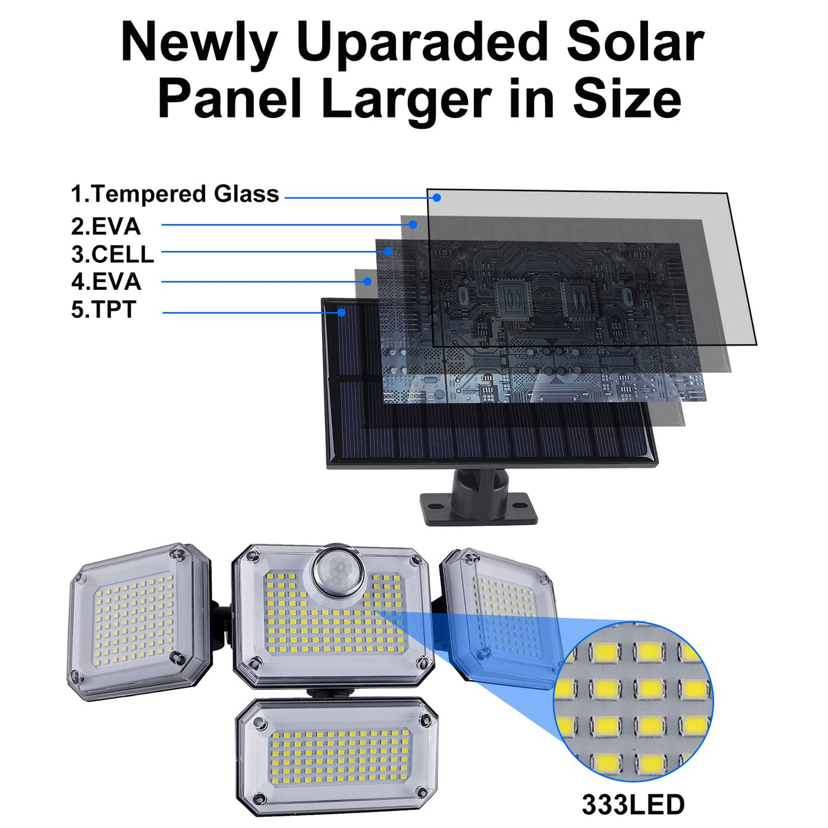 T-SUN Solar Motion Sensor Outdoor Lights, 333LED Solar Security Flood Lights with Remote Control, IP65 Waterproof 3 Lighting Mod
