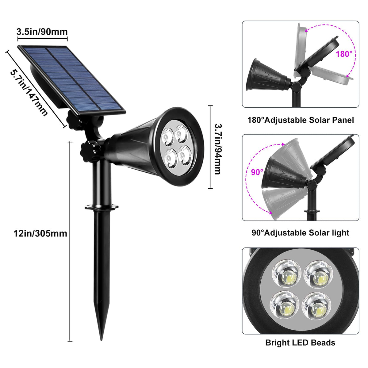 Q: Can I adjust the angle of the solar panel and spotlight?A: Yes, the T-SUN Solar Spotlights allow for angle adjustments: the solar panel can be tilted up to one hundred eighty degrees, while the spotlight can be adjusted up to ninety degrees, enabling optimal lighting direction and sunlight exposure.