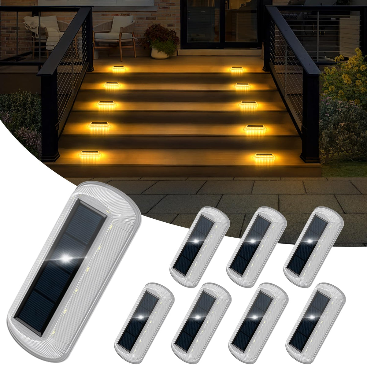 T-Sun Solar Step Lights For Outside Warm White Solar Stair Lights Waterproof Led Solar Lights Front Porch Decor For Outdoor Deck Driveway Fence Pathway Railing Porch 8 Pack