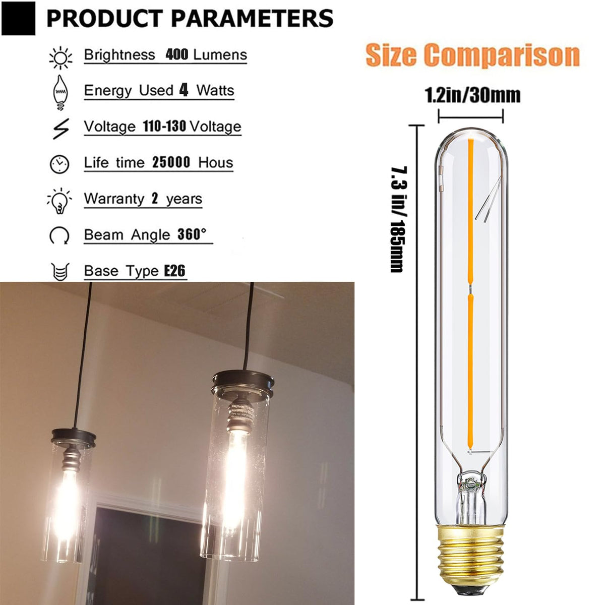 Thank you for choosing LED Edison bulb dimmable, your satisfaction is the strongest support to us. ?What separates us from the competitions?? ? Light up your space instantly, without any delay. ? CE, FCC and RoHS certified. ? Dimmable. Fully compatible with following models after test: LUTRON:DVG-603P/DV-600P/DVSC-600P/S-600/S-603P/S-603PNL LUTRON:MSCL-VP153M/AYCL-153P/AYCL-253P/MRF2-6CL/6674 LEVTTON:6602-220/C22-6672-1LW/6684/6681/SAL-06P SPECIFICATIONS: ? Wattage:6W ? Socket: E26 ? Voltage: 120V AC ? Lumen output: 600LM ? Color temperature:2700K (Amber Warm White) ? CRI: > 90+ ? Box included:4 x 6W Warm White LED Tubular Bulb. Cautions: 1.Switch off the power before replace the lamp 2.Keep away from direct sunshine and too high temperature. 3.Indoor use only. 4.If any doubt about the installation or use of this product, please consult a competent electrician. 5.If you are not 100% satisfied with your purchase or there is any damage in transit we will make it right. We are committed to responding to any request within 12 hours.