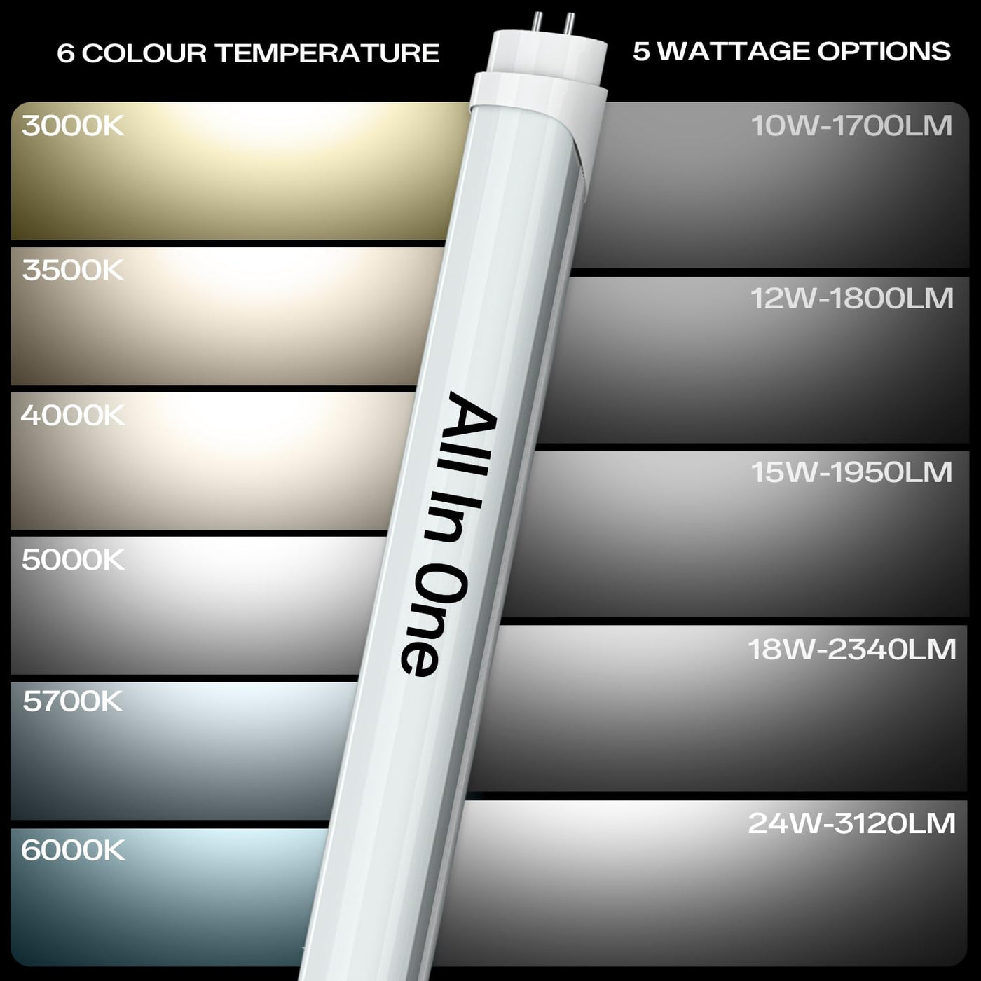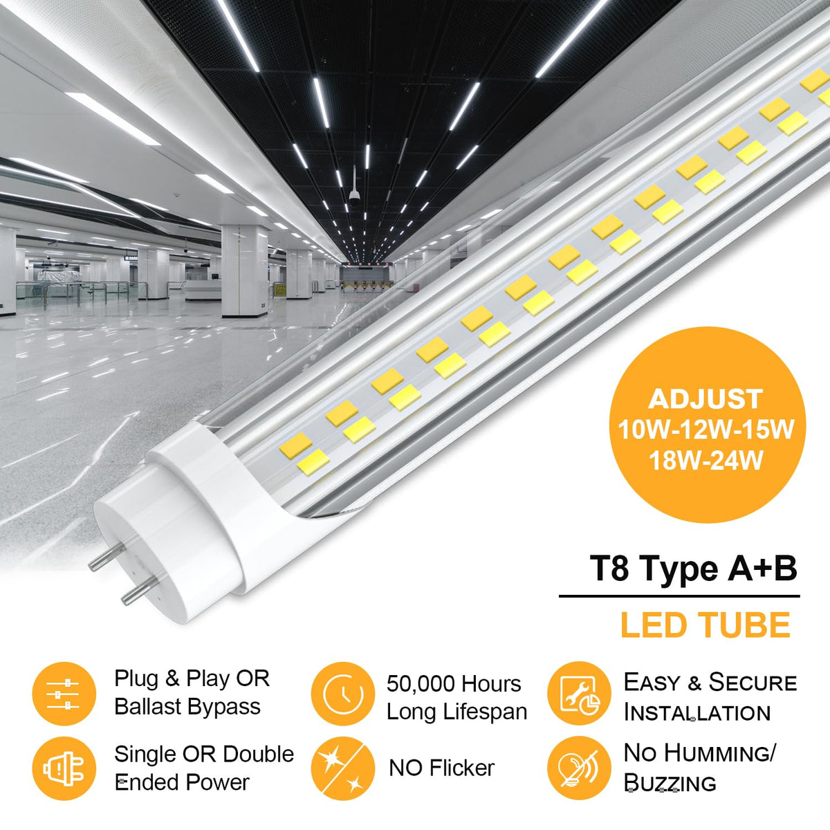 T8 T12 Led Tube Light Bulbs 4 Foot, 5 Power(10W-24W)& 6Cct(3000K-6500K) All In 1, Plug & Play Or Ballast Bypass, T8 4Ft Fluoresc