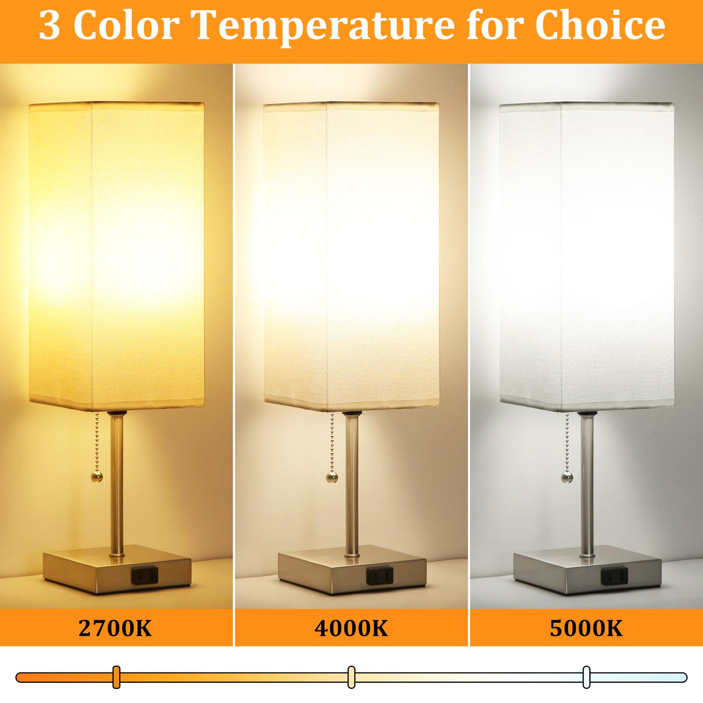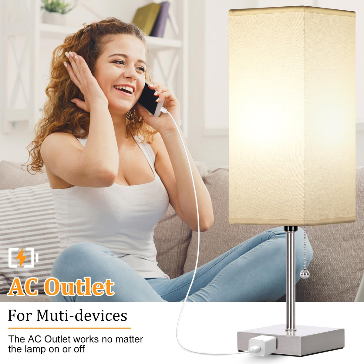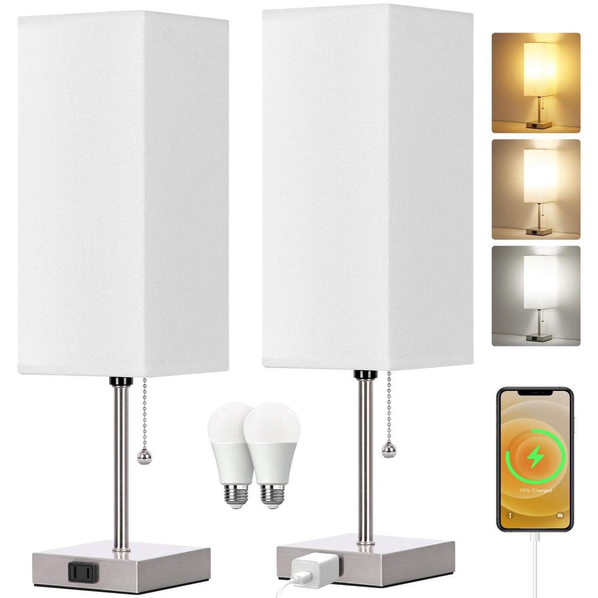 Table Lamp For Bedroom Set Of 2,3-Color Bedside Lamps With Pull Chain Table Lamps For Nightstand With Ac Outlets,18'' Night Ligh