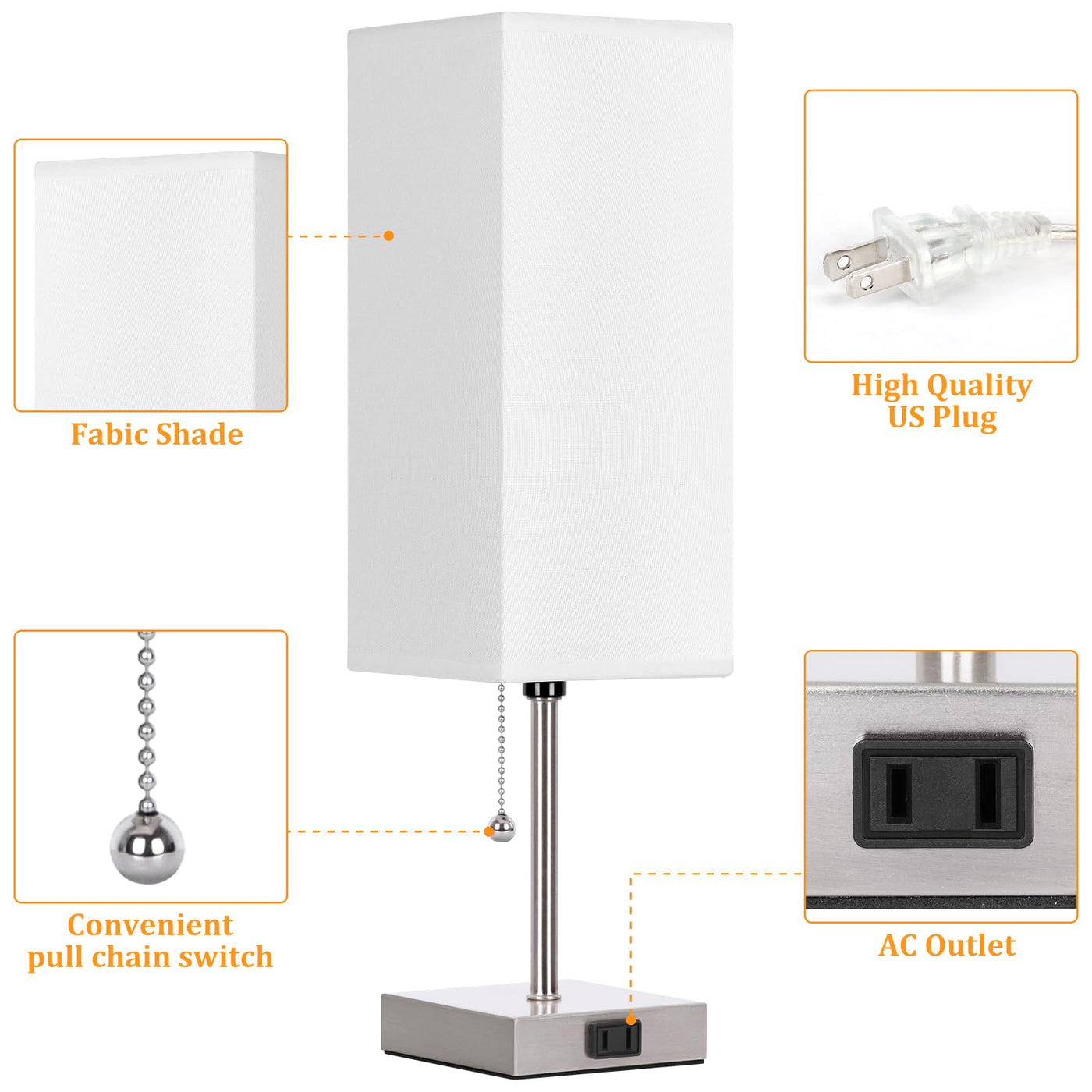 Q: Does the lamp have any charging capabilities?A: Yes, this Table Lamp is equipped with a 2-prong AC outlet, providing convenient charging options for your devices, even when the lamp is turned off.