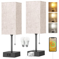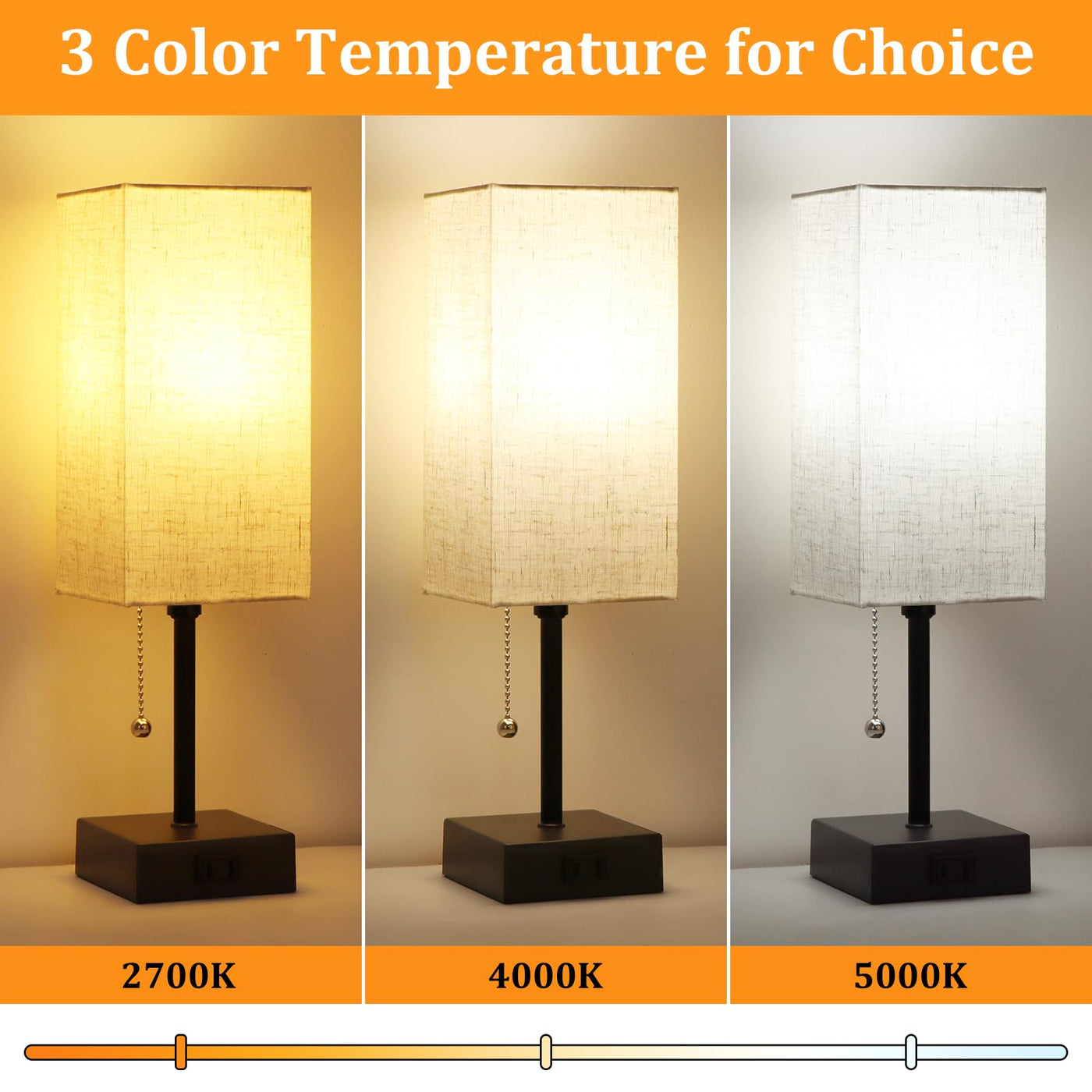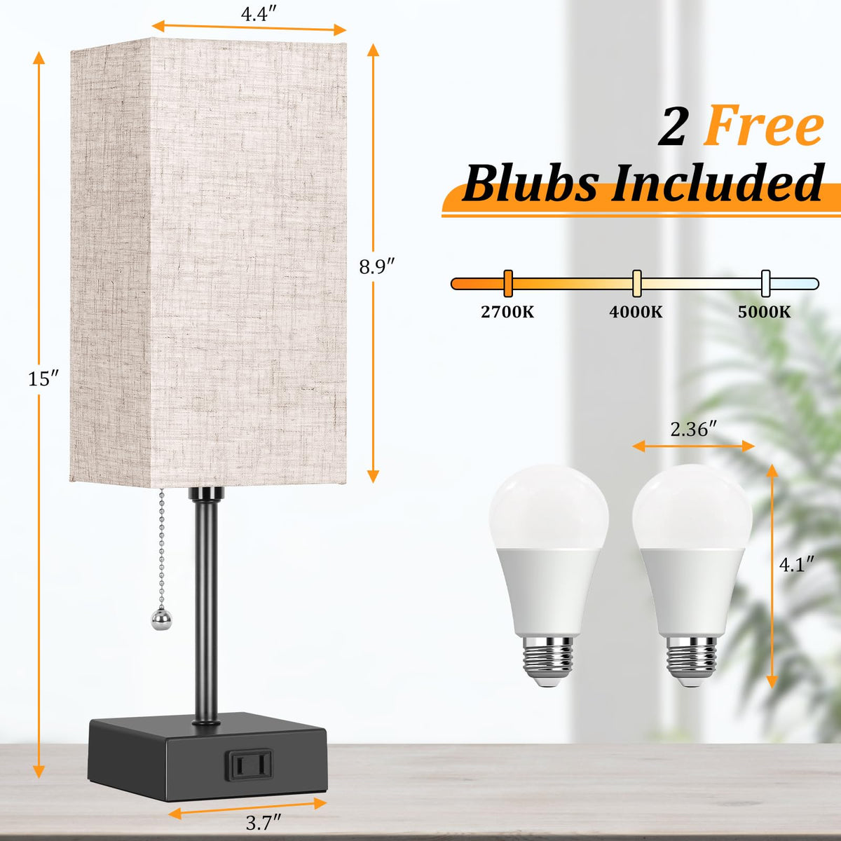 Table Lamp For Bedroom Set Of 2,3-Color Bedside Lamps With Pull Chain Table Lamps For Nightstand With Ac Outlets,Night Light Lam