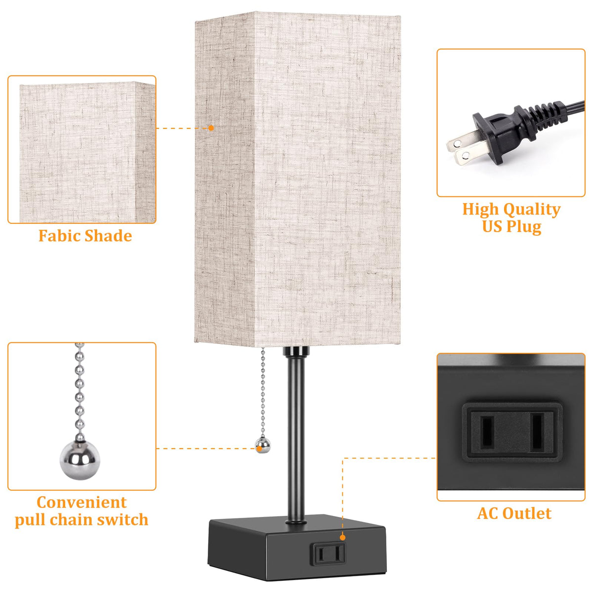 Q: Does the Table Lamp have any charging options?A: Yes, this Table Lamp is designed with a 2-prong AC outlet, allowing you to charge your devices conveniently while using the lamp.