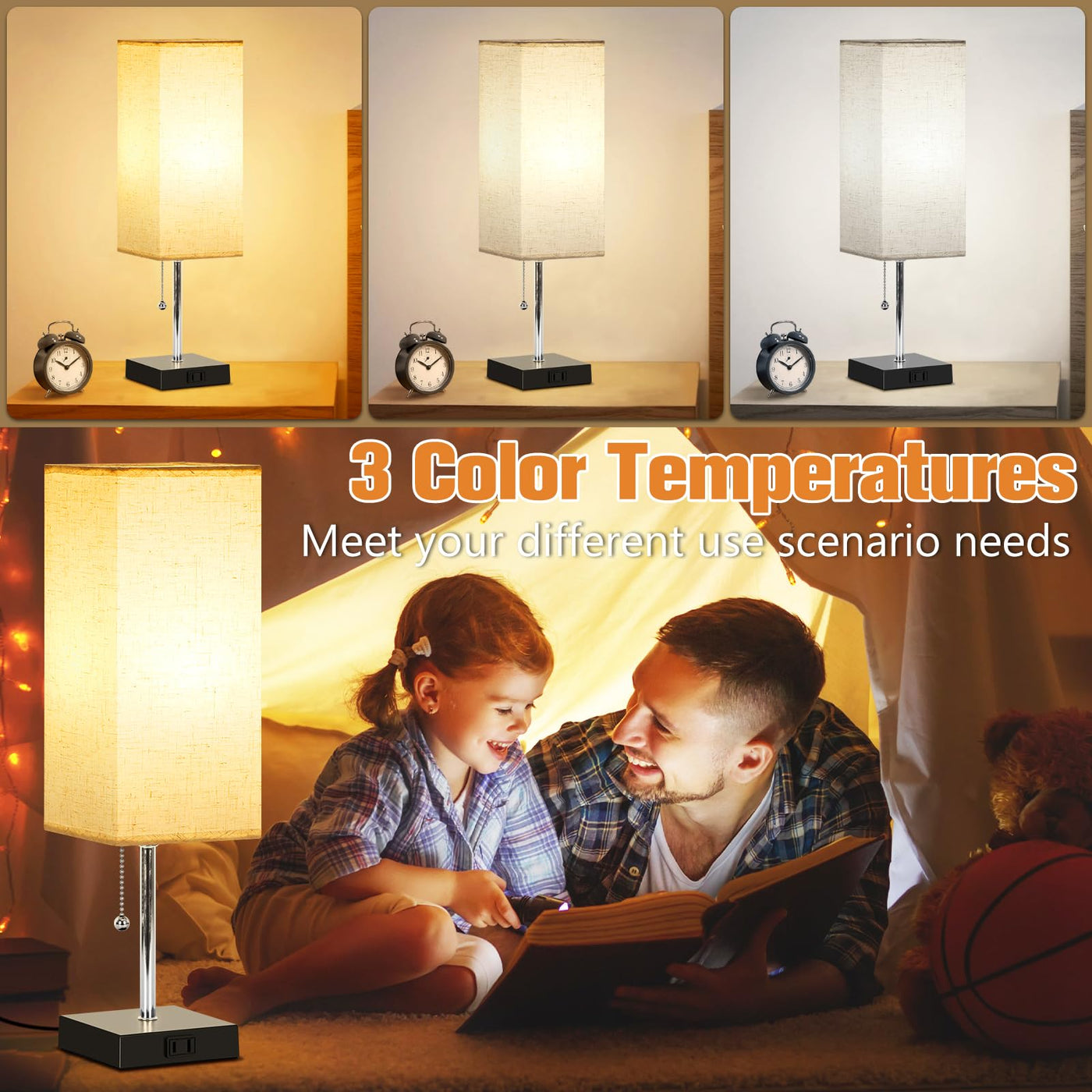 Table Lamp For Bedroom Set Of 2, Bedside Lamps With 3 Color Temperatures Night Light, Lamp For Night Stands With Ac Outlet And S