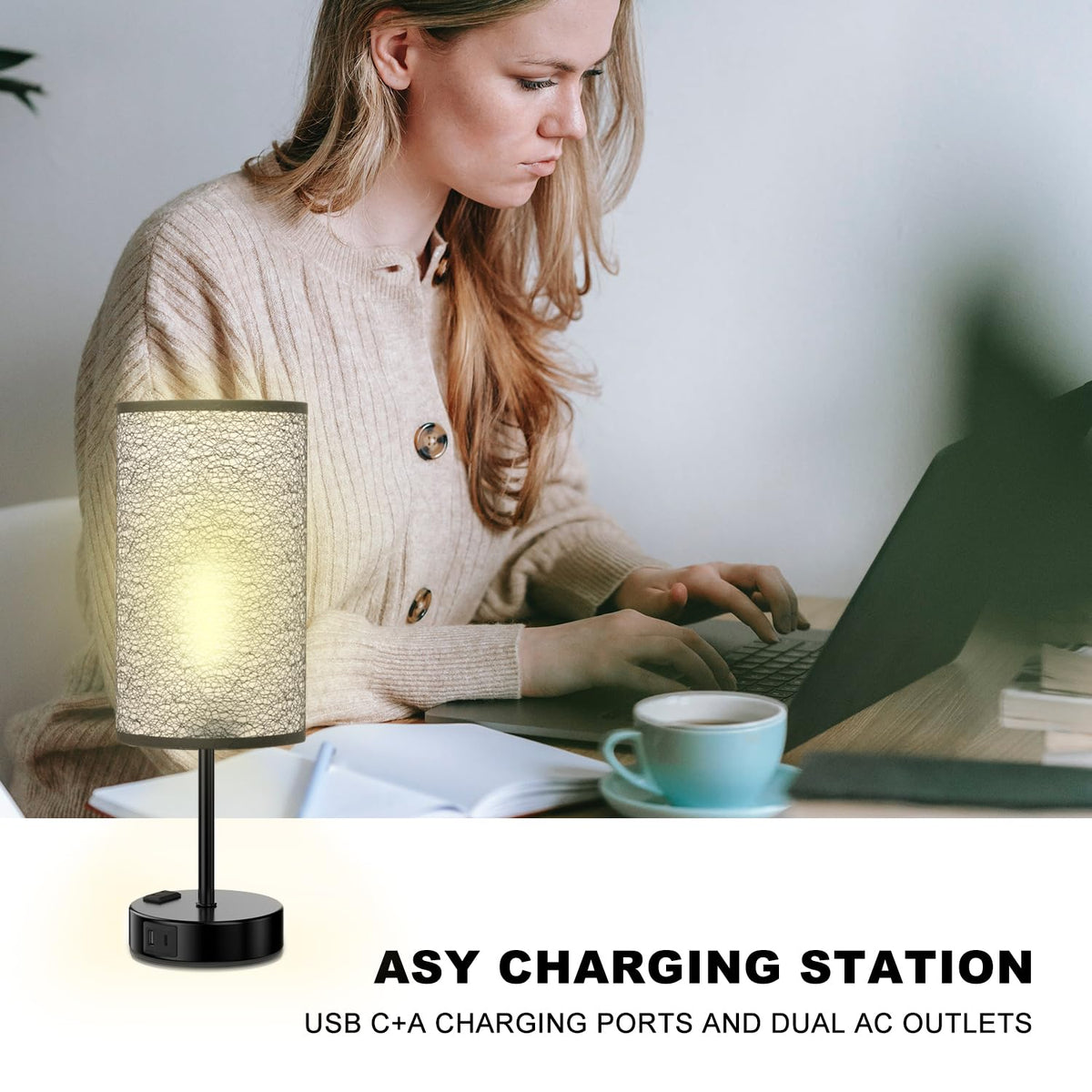Q: Does the lamp have charging ports for devices?A: Yes, this bedside lamp is equipped with USB and Type-C charging ports, as well as a 2-prong AC outlet. These ports maintain a stable 5V 2.1A output, enabling you to charge your phone, tablet, and other electronic devices, whether the lamp is on or off.
