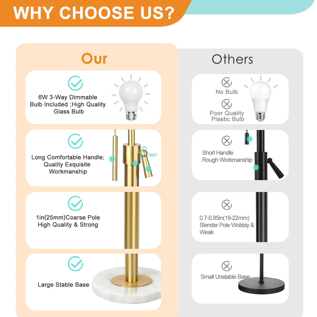 Q: Do these lamps come with bulbs, and what type are they?A: Yes, the table lamps include two A19-6W dimmable LED bulbs. These bulbs offer three different brightness levels (low, medium, high) to easily adjust the lighting based on your mood or activity.