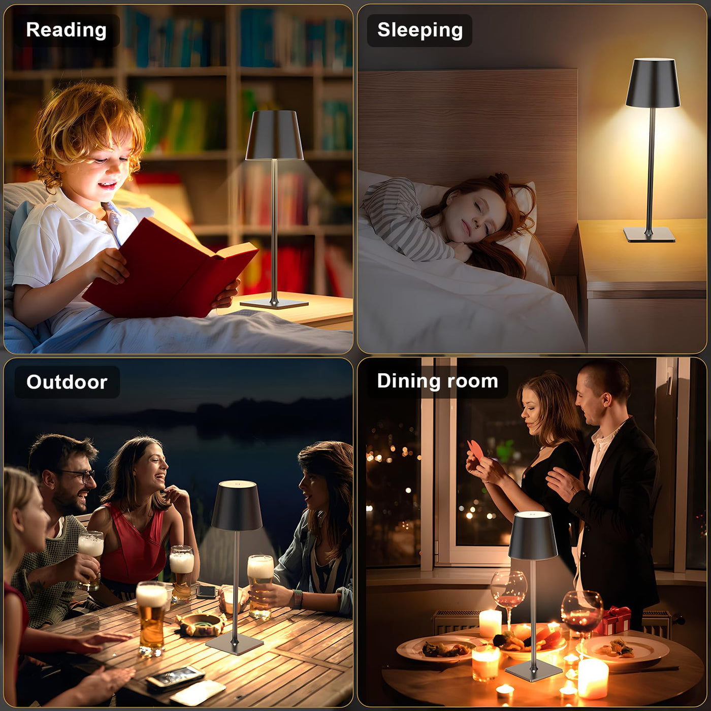 Q: Is the Mojimdo Table Lamp suitable for outdoor use?A: Yes, the Mojimdo Table Lamp has an IP54 waterproof rating, making it suitable for outdoor activities such as camping or outdoor dining. Its cordless design also enhances its versatility in outdoor settings.