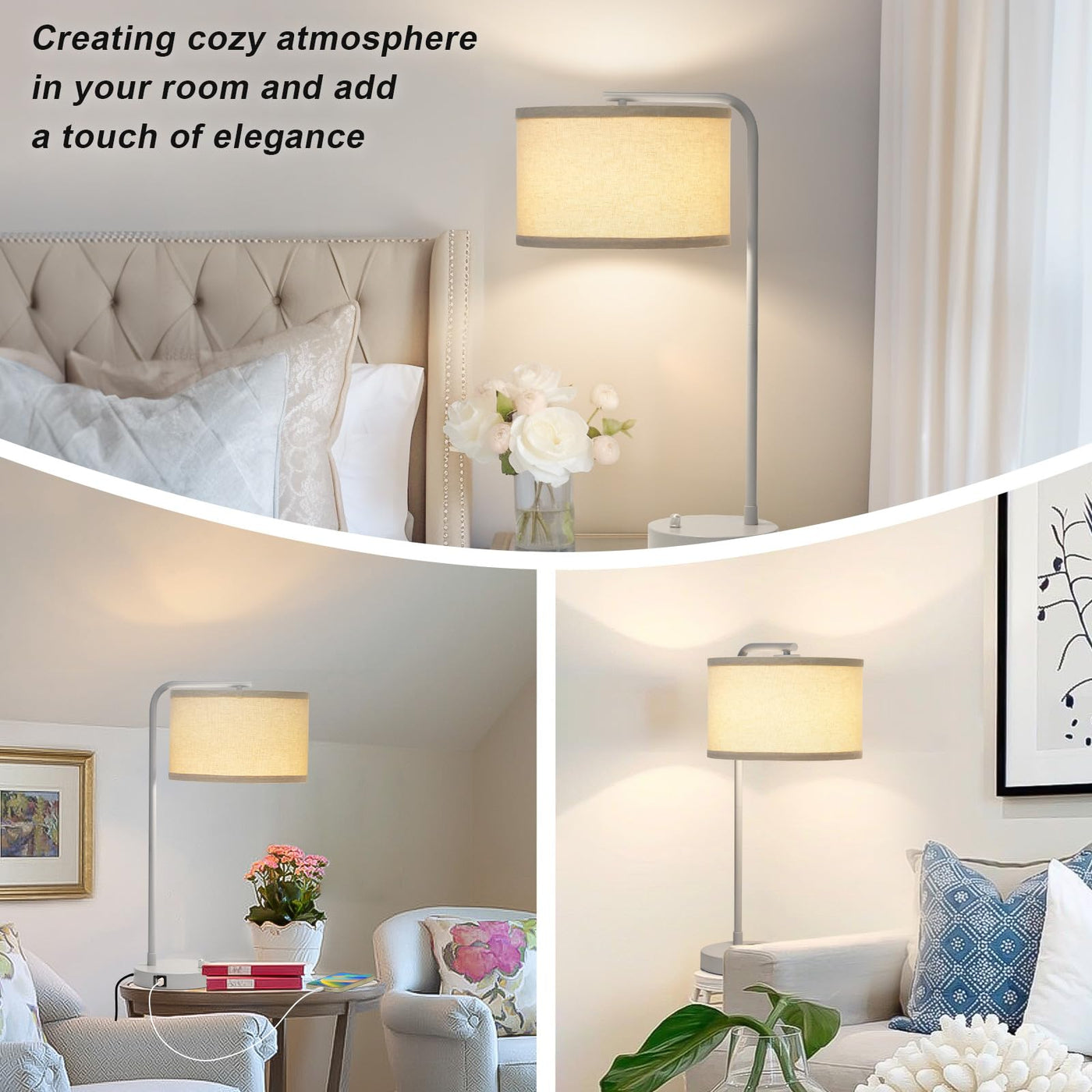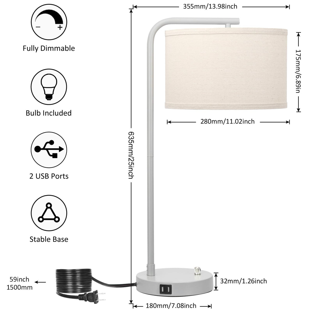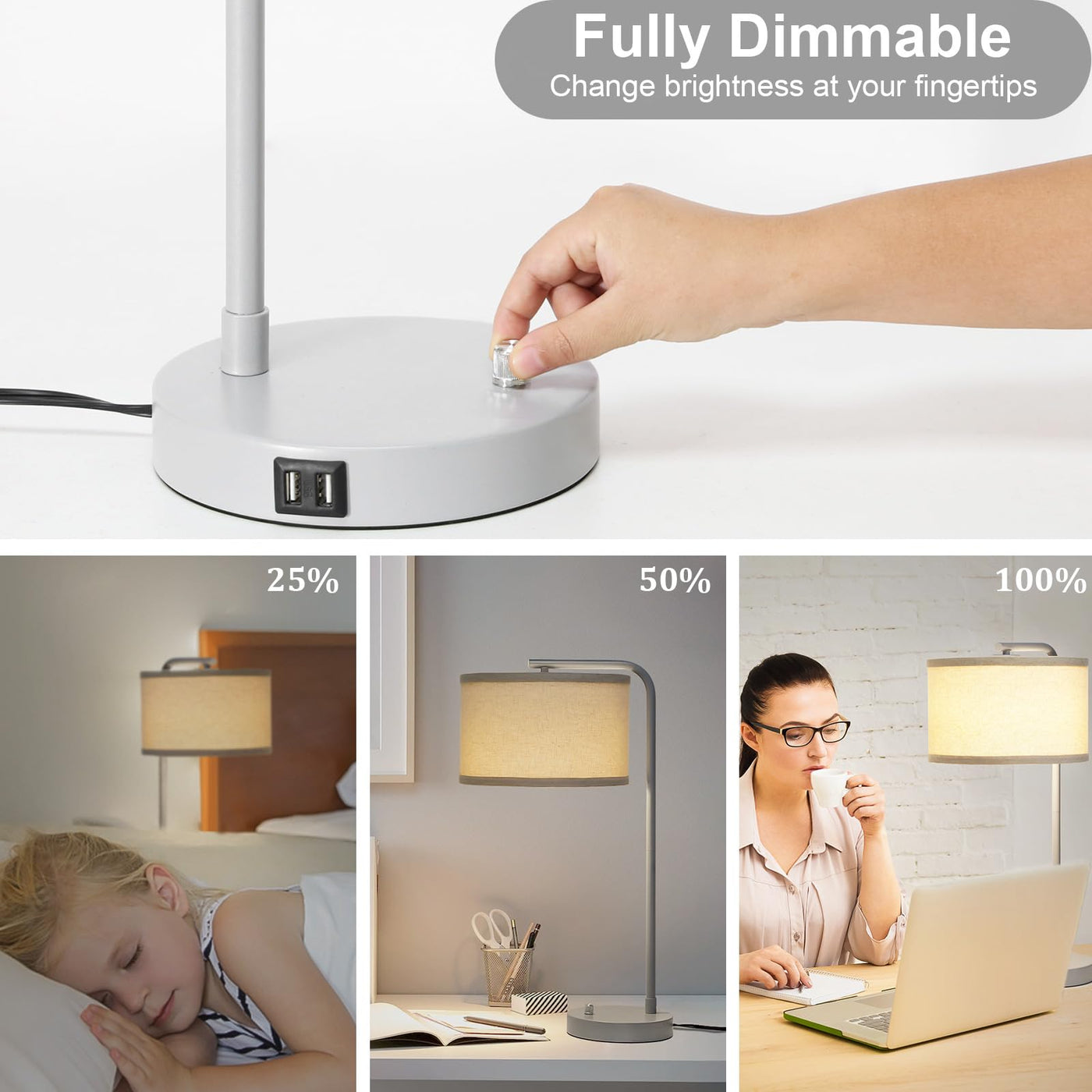 Table Lamp With Usb Ports, Fully Dimmable Nightstand Lamp For Living Room, Modern Grey Bedside Lamp, Tall Table Lamp With Beige