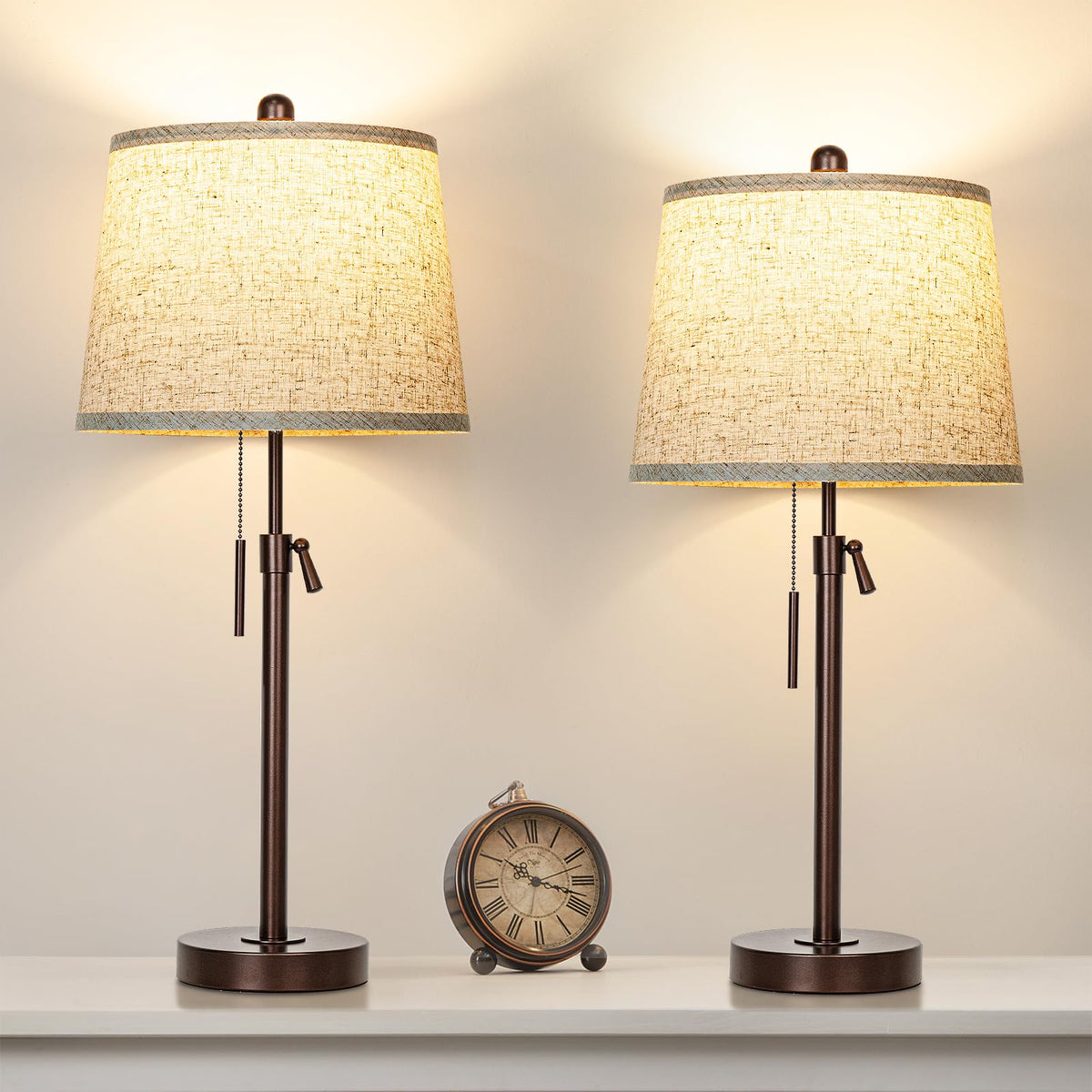Q: What are the height options for the JUNNAI table lamps?A: The JUNNAI table lamps feature an adjustable height that ranges from 22 inches to 30 inches, making them versatile for various spaces in your home.