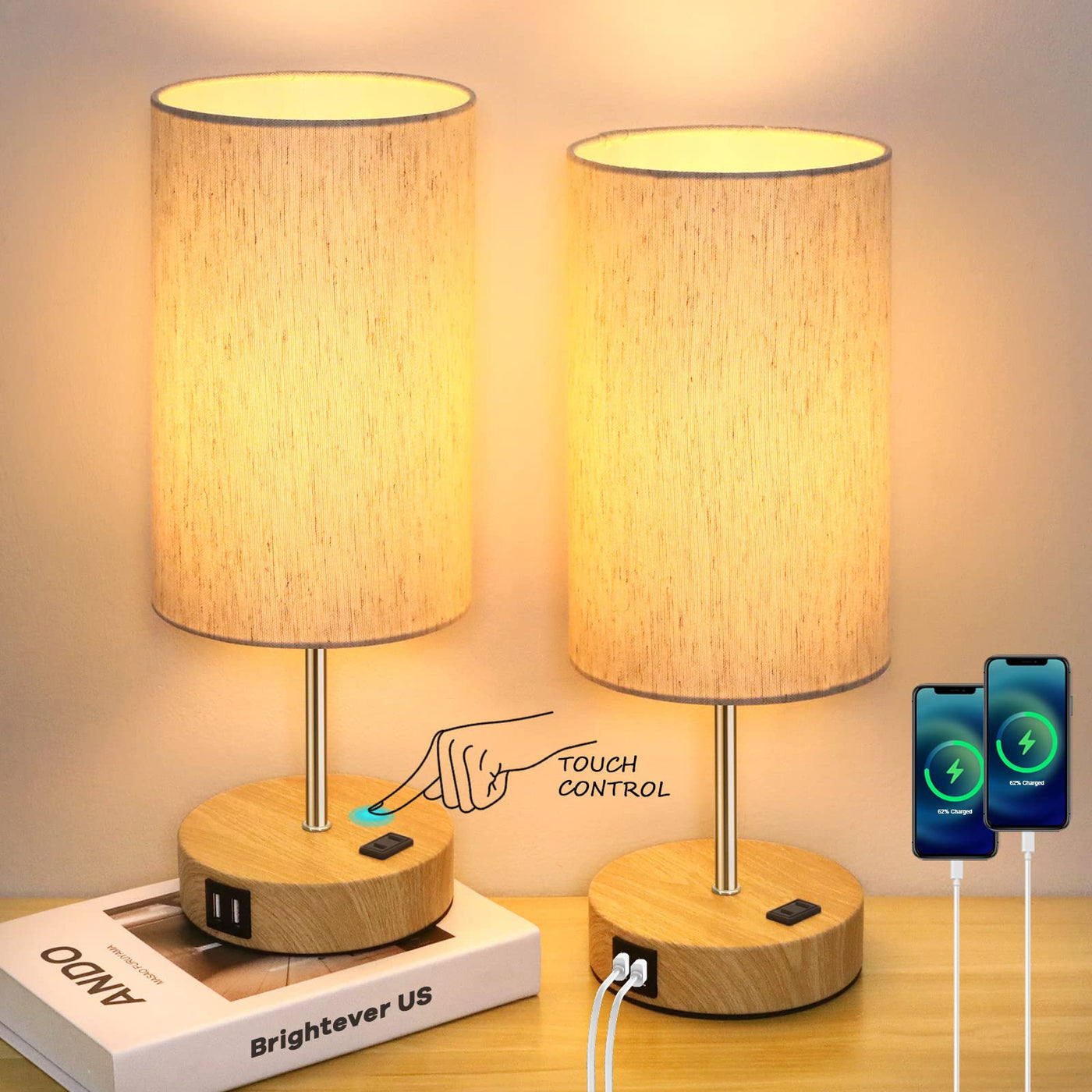 Are You Looking For Bedside Nightstand Lamps With Multi-Functions? This Round Flaxen Fabric Shade With Wood Color Base Lamp Set Are Here To Help! More Than Provide Just Illumination At Your Will, Our Table Lamps Bring Artful Appeal To Your Space As They Shine, Try Add It To Your Nightstand To Give The Suite A Easiest Makeover, Or Anywhere To Greet Guests And Families With A Warm Relaxing Glow. Dual Usb Ports Easy Charging Station Design- These 3-Way Dimmable Table Lamps Are Built In Dual 5V/2.1A Usb Ports, Charging Your Electronic Device So Fast Even Far Away From Socket Or Wall Outlet.2700K Warm White Led Bulb Included-We Offer Free Led Bulbs, Flicker-Free, No Buzzing, Provide 800Lm Super Brightness Equivalent To 60W Traditional Incandescent Bulbs But On Consume 10% Energy During Its 25000+ Hours Lifespan!Choose Low, Middle, High Brightness Up To Your Mood -We Recommend Lowest Mode Perfect For Midnight Nursery, Meditation, Movie Nights, Highest Mode Excellent For Reading, Working, Playing Electronics, Or Any Exquisite Art Works, And You Can Easily Choose Middle Brightness To Suits Needs Of Romantic Meals, Game Playing, Family Gathering Night, Offer Beautiful & Comfortable Feeling For Any Room. Package Included: 2?Lamp Bases2?Lampshades2?Energy Saving Led Bulbs1?Instruction Manual