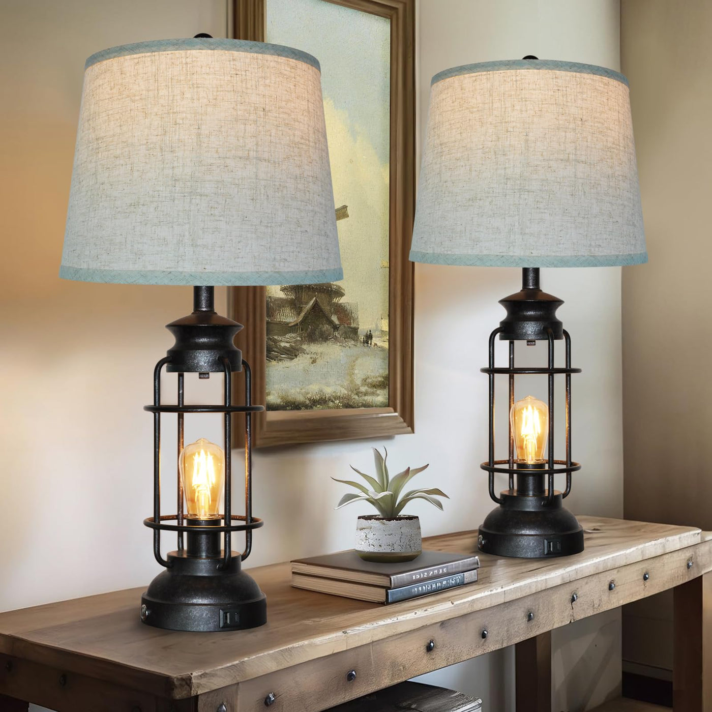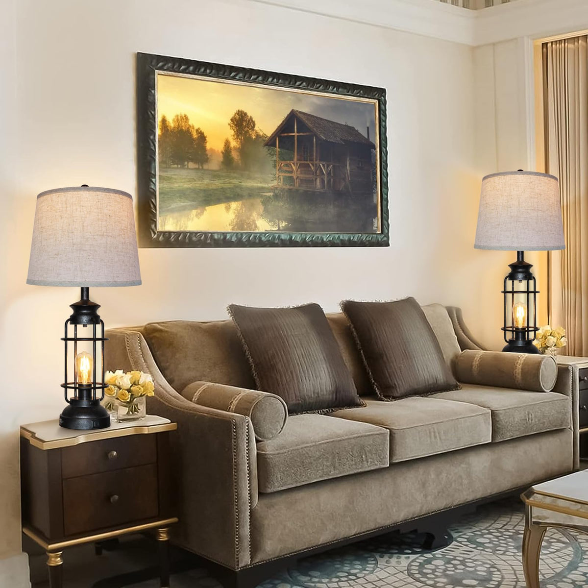 Vintage Industrial Table Lamps Set Of 2, Are 28.5 Inches Tall Each. It Can Create A Pleasant Atmosphere For Kitchen, Bedroom, Farmhouse, Dining Room And Other Decorative Occasions. 3 Way Dimmable Bedside Lamp Simply Touching The Controlled Switch On The Bottom, You Can Change Into Your Favorite Style Of Brightness In Different Situations. Rotate The Switch To Turn On The Top Light Bulb And Accompany Your Baby To Sleep. You Can Use The Desk Lamp In Different Situations.Eye Protection Design: This Rustic Industrial Lamp Has Gorgeous Curves And Exquisite Design. With Premium Linen Fabric Lampshade, The Light Is Soft And Not Harsh, Which Can Protect Your Eyes Well While Reading Or Working (Note: Lampshade Must Be Self-Assembled). This Lamp Has Been Certified By National Safety Standards. Each Lamp Uses A Maximum 60 W Bulb And Equipped With An E26 Socket Compatible With Various Cfls. Customer Satisfaction And Warranty: All Lighting Fixtures Come With A 2-Year Warranty Period. If You Have Any Questions About Vintage Table Lamps, Please Feel Free To Send Us A Message. We Will Answer Your Questions Promptly And Patiently Within 24 Hours.
