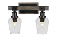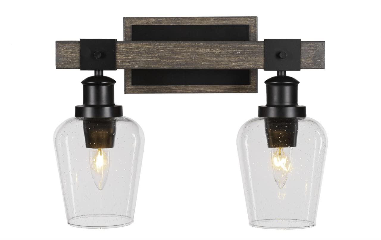 Tacoma 2 Light Bath Bar In Matte Black & Painted Distressed Wood-look Metal With 5" Clear Bubble Glass
