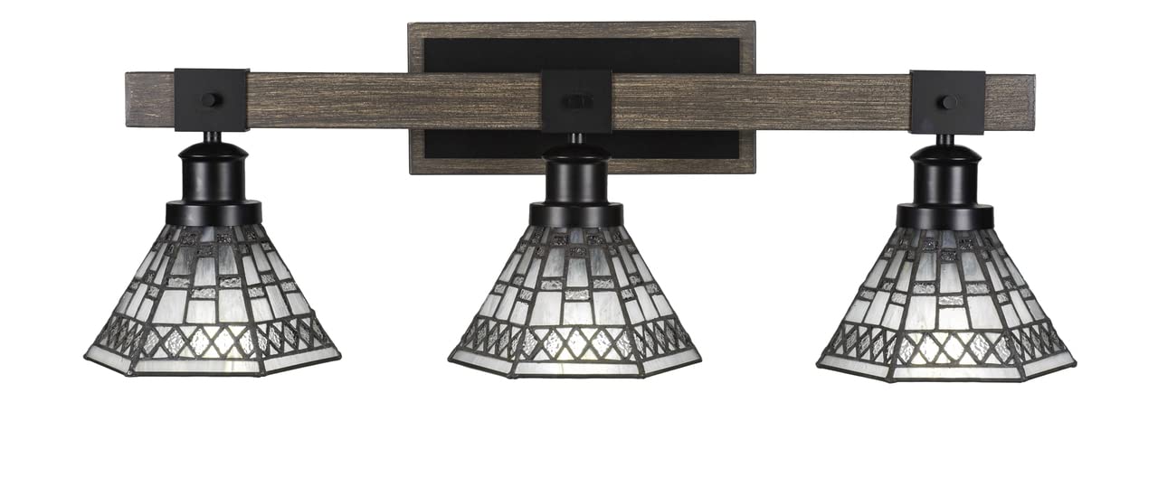 Tacoma 3 Light Bath Bar In Matte Black & Painted Distressed Wood-look Metal With 7" Italian Ice Glass