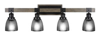 Tacoma 4 Light Bath Bar In Matte Black & Painted Distressed Wood-look Metal With 5" Clear Ribbed Glass