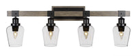Tacoma 4 Light Bath Bar In Matte Black & Painted Distressed Wood-look Metal With 5" Clear Bubble Glass