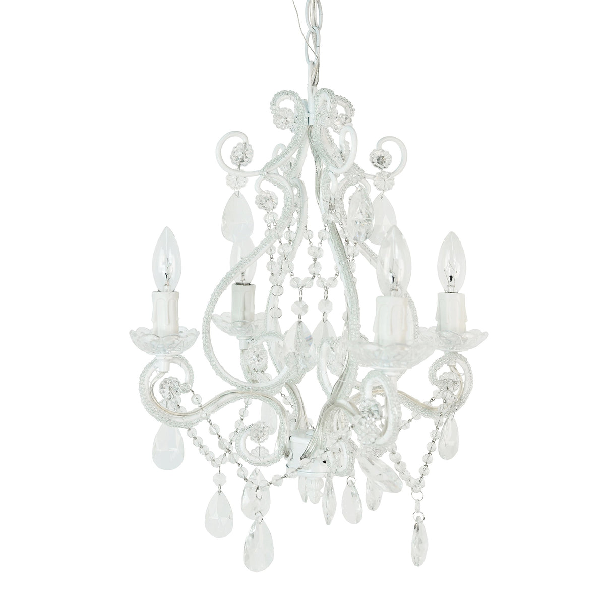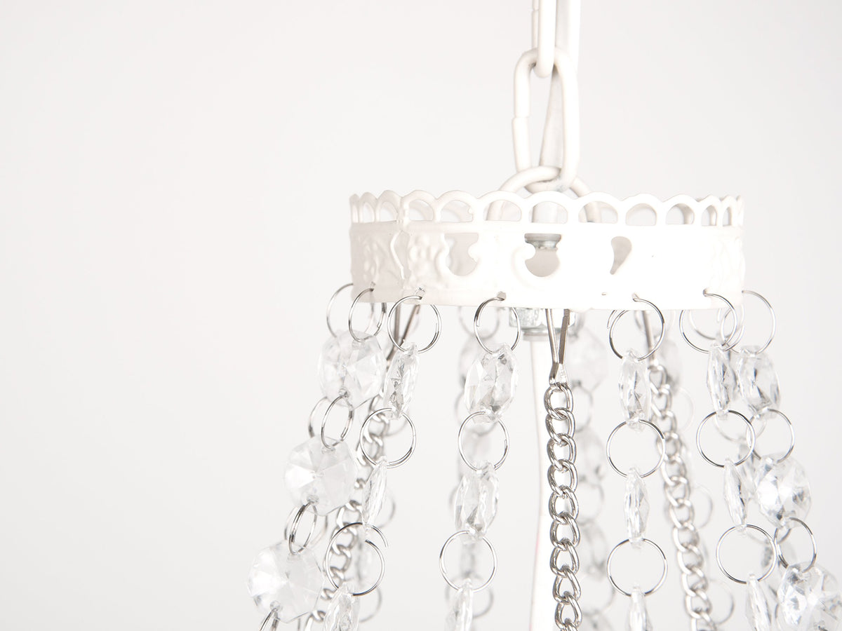 Tadpoles Mini 4-Bulb Vintage Chandelier, White Diamond, Plug-In/Hardwired, Faux Crystal Beads