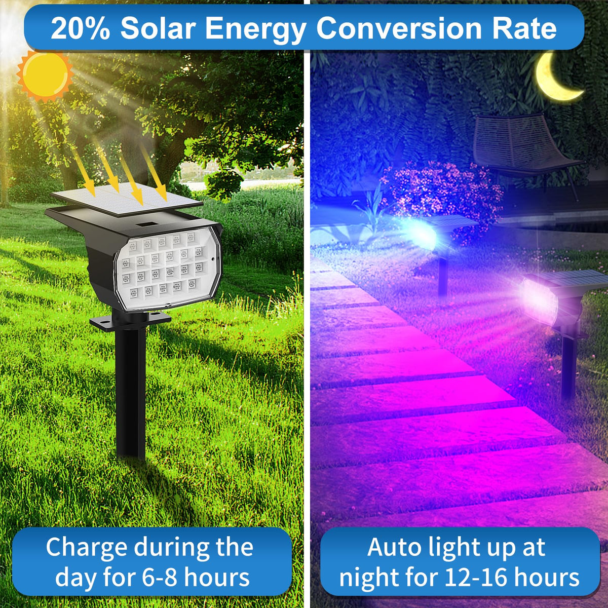 Tadyreal Solar Color Changing Spot Lights Outdoor Waterproof Colored Rgb Solar Powered Landscape Lights For Yard 7 Lighting Mode