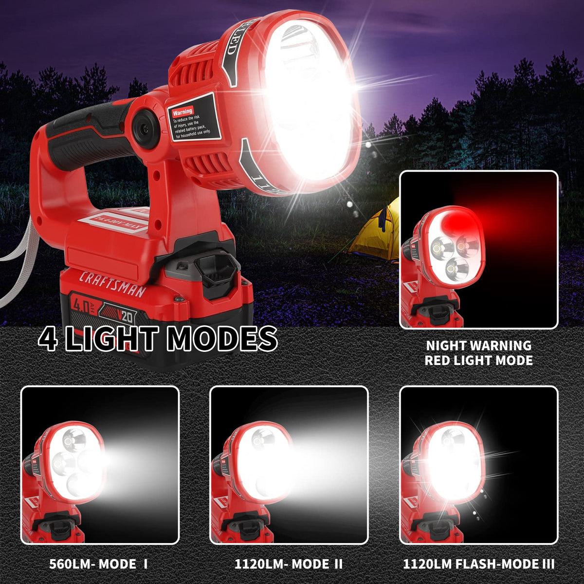 Taingwei 1120Lm Led Work Light For Craftsman V20 Battery,12W Portable Battery Powered Lights Powered By 20V Battery, Rechargeabl