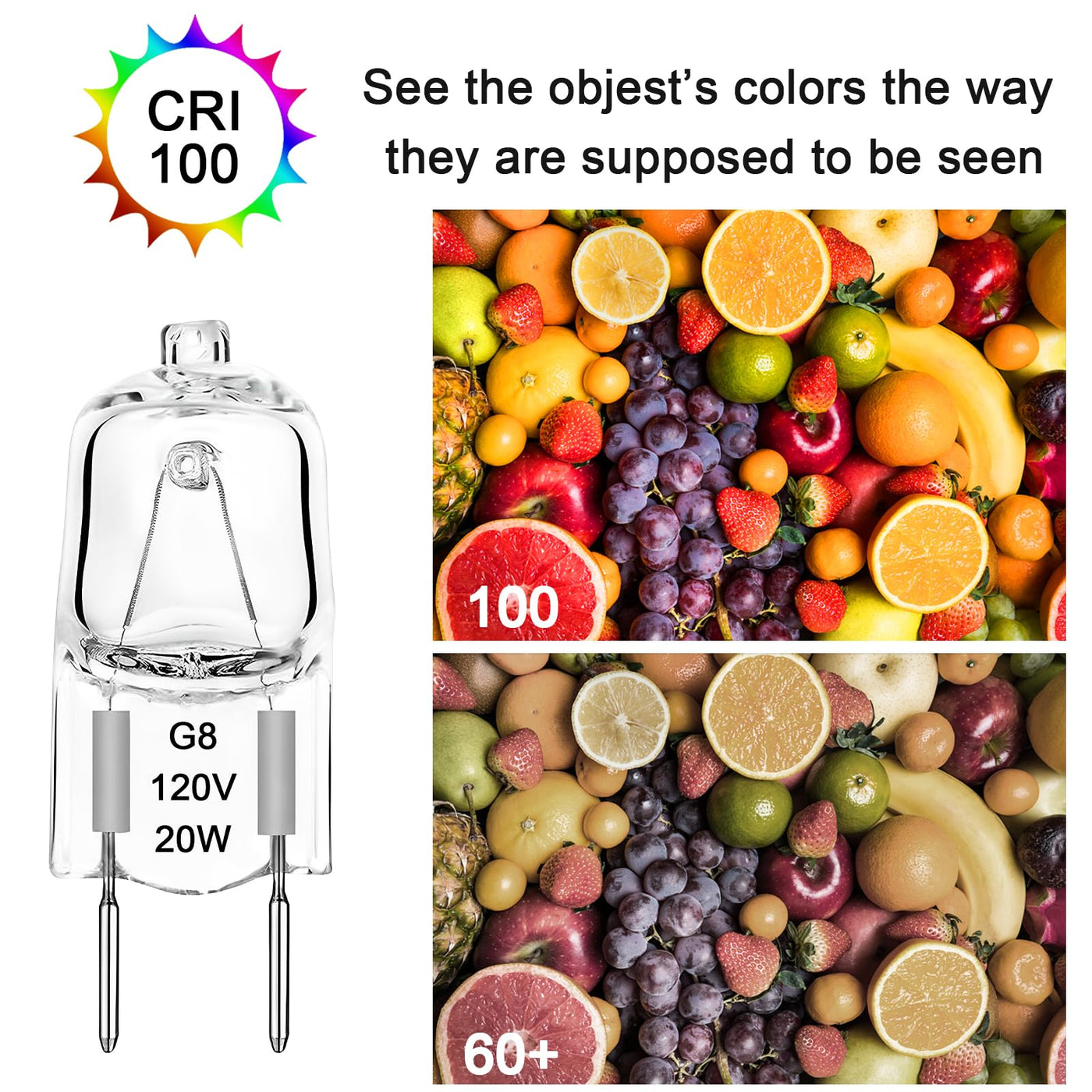 Q: What applications are these G8 halogen bulbs suitable for?A: The TAIYALOO G8 Halogen Bulbs are ideal for various lighting applications, including under cabinet puck lights, counter lights, kitchen range hoods, accent lights, table lamps, and more.