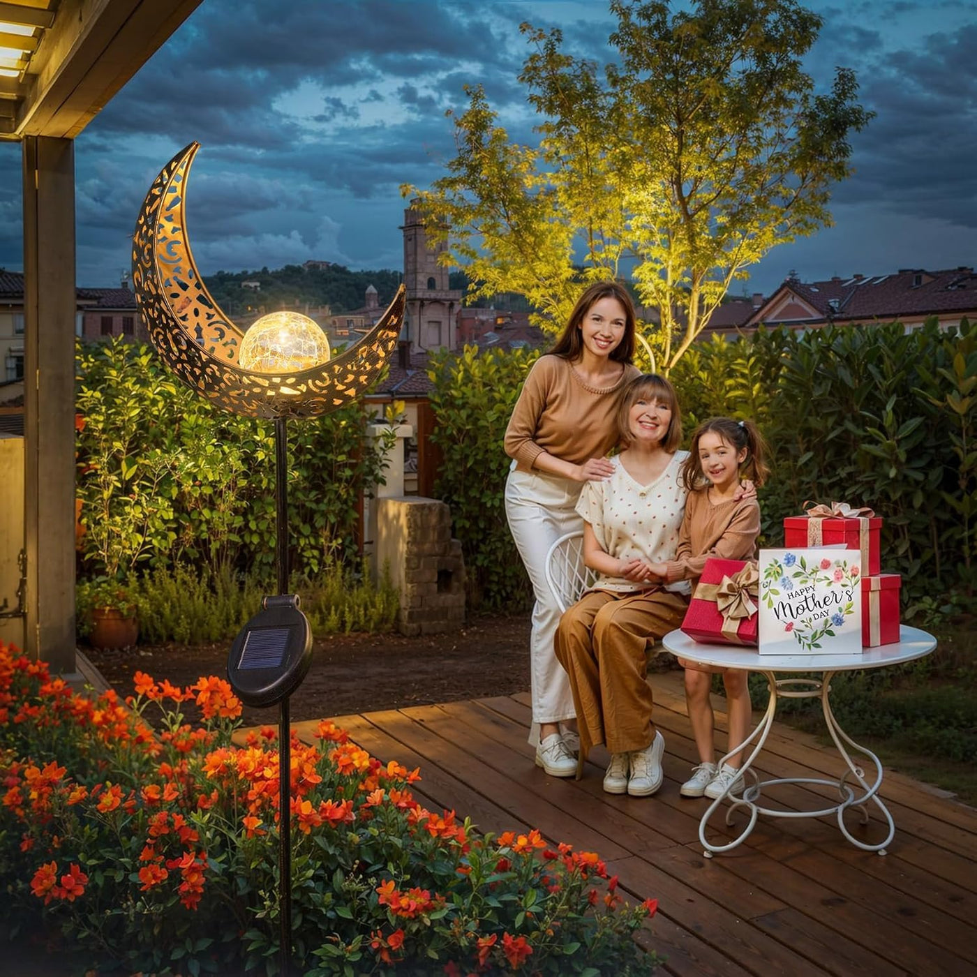 Take Me Moon Solar Lights Garden Outdoor Decor Waterproof Metal Solar Stakes Lights For Patio Yard Walkway Lawn Patio Mothers Da