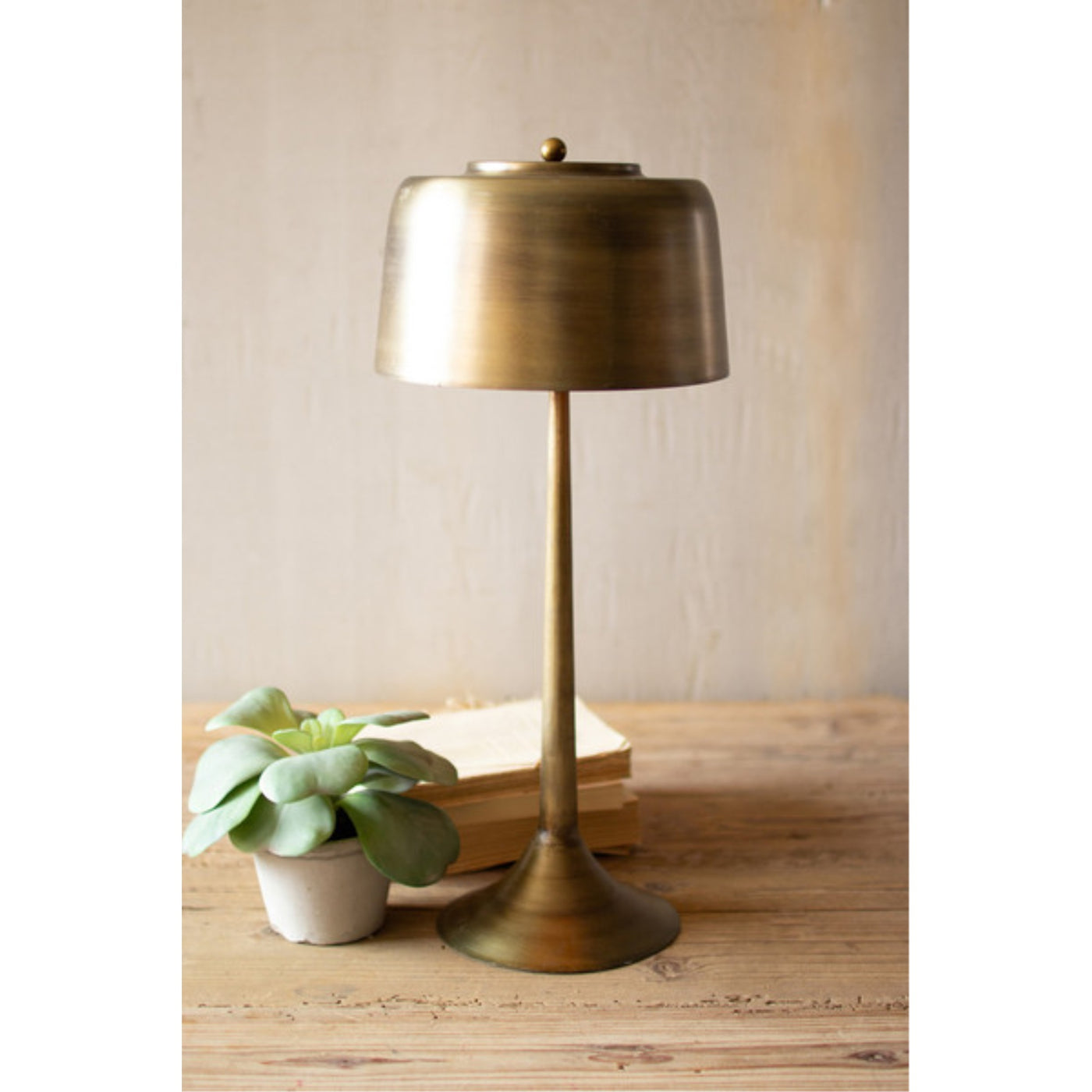 pNDE1372 TALL ANTIQUE BRASS TABLE LAMP WITH BRASS SHADE, Sleek and Modern with a touch of rustic. This tall antique brass table lamp with brass shade adds the perfect look to any living area or bedroom table. Its brass finish adds a solid pop that will go with any style. 40Watt bulb Toggle switch on the cord, about 36 from the base of the lamp, Care Instruction : Wipe clean with dry cloth/p