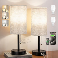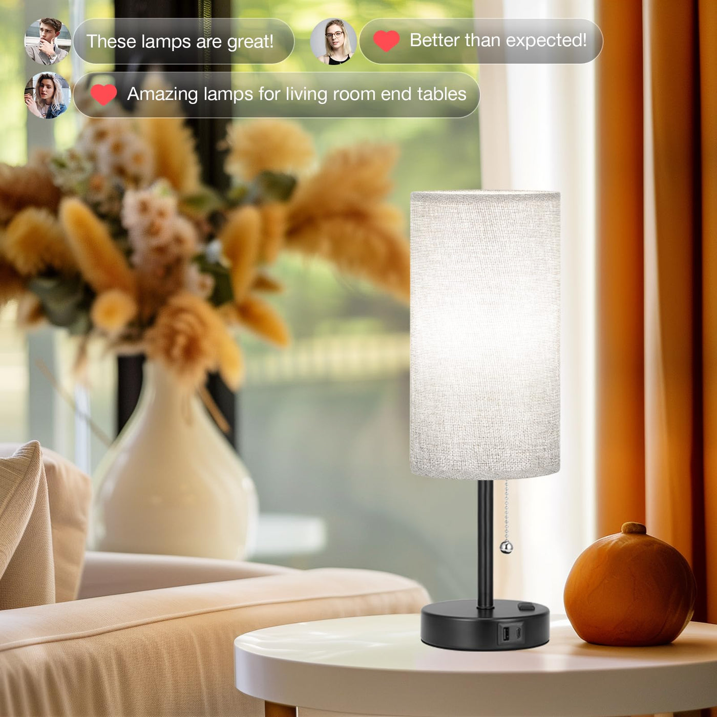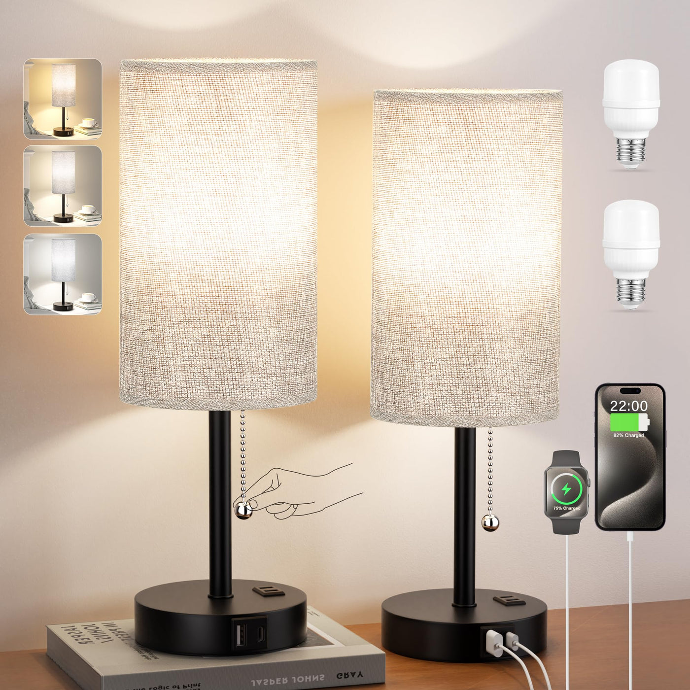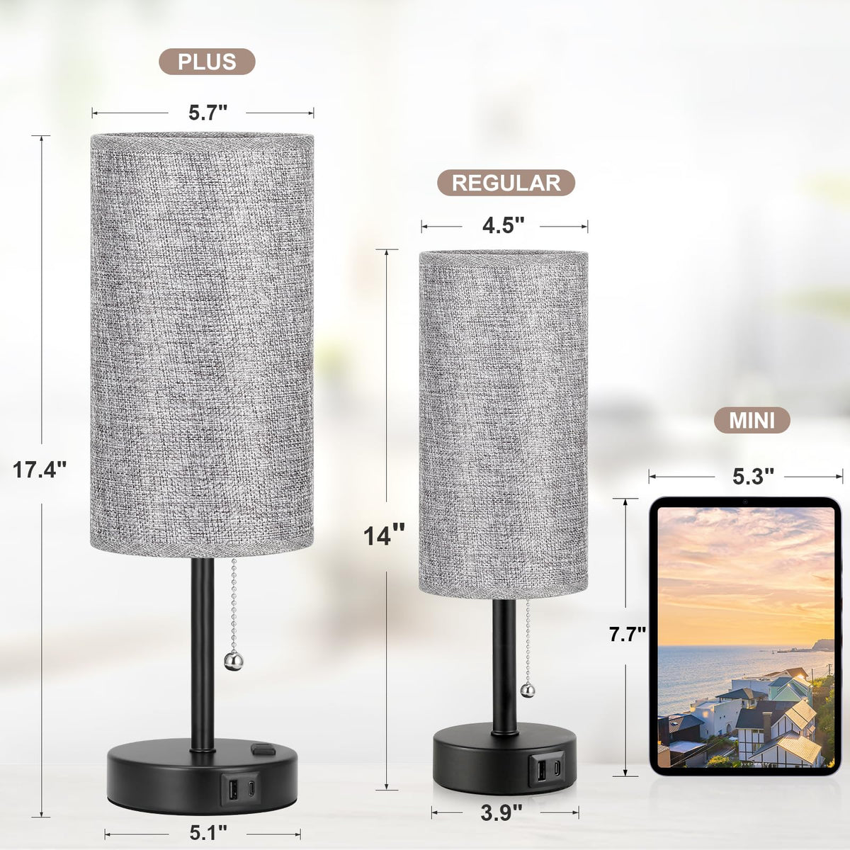 Tall Grey Bedside Lamp For Bedroom Set Of 2- 17.4Inch Grey Table Lamp With Usb A + C Charging Port, 3 Color Temperatures Pull Ch