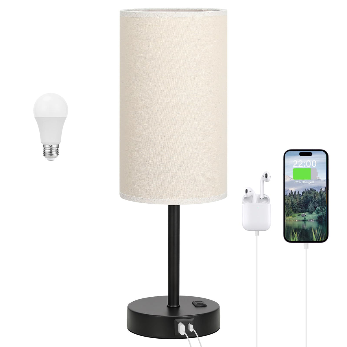 Tall Touch Bedside Table Lamp With Usb - 3 Way Dimmable Black Lamps For Bedroom Nightstand, Desk Lamp With Black Charging Statio