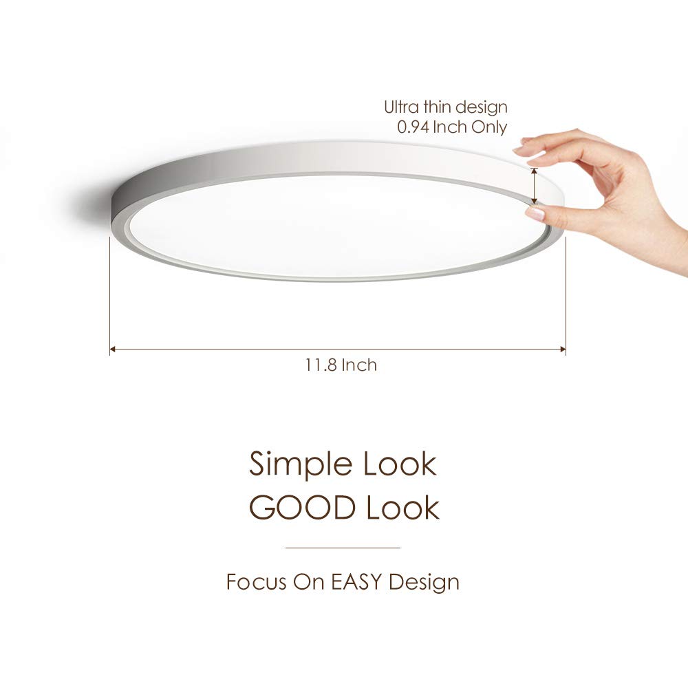 TALOYA Flush Mount Ceiling Light, 12 Inch, 20W LED, 3 Color Temperatures (3000K/4000K/6500K), White, Model MOON-C