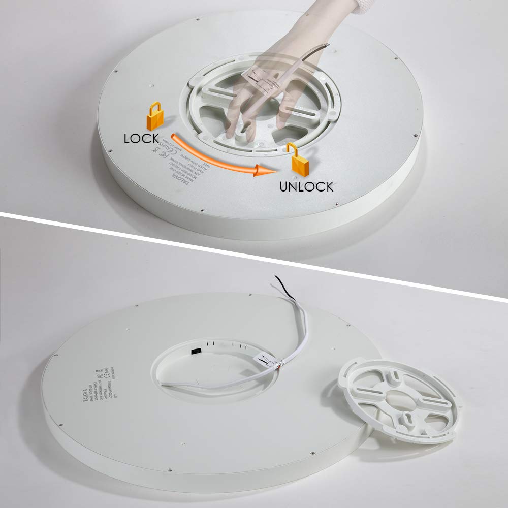 Q: What is the lifespan of the TALOYA ceiling light?A: The TALOYA ceiling light has a lifespan of over thirty thousand hours under normal usage conditions, which equates to more than three years of use if operated for eight hours each day.
