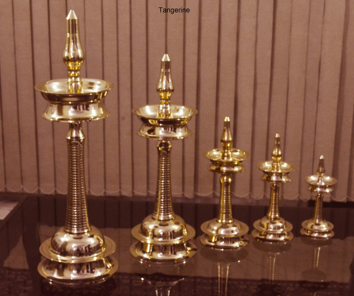 TANGERINE Traditional Brass Kerala Nilavilakku Diya Deepak Oil Lamp - Height (16inches)