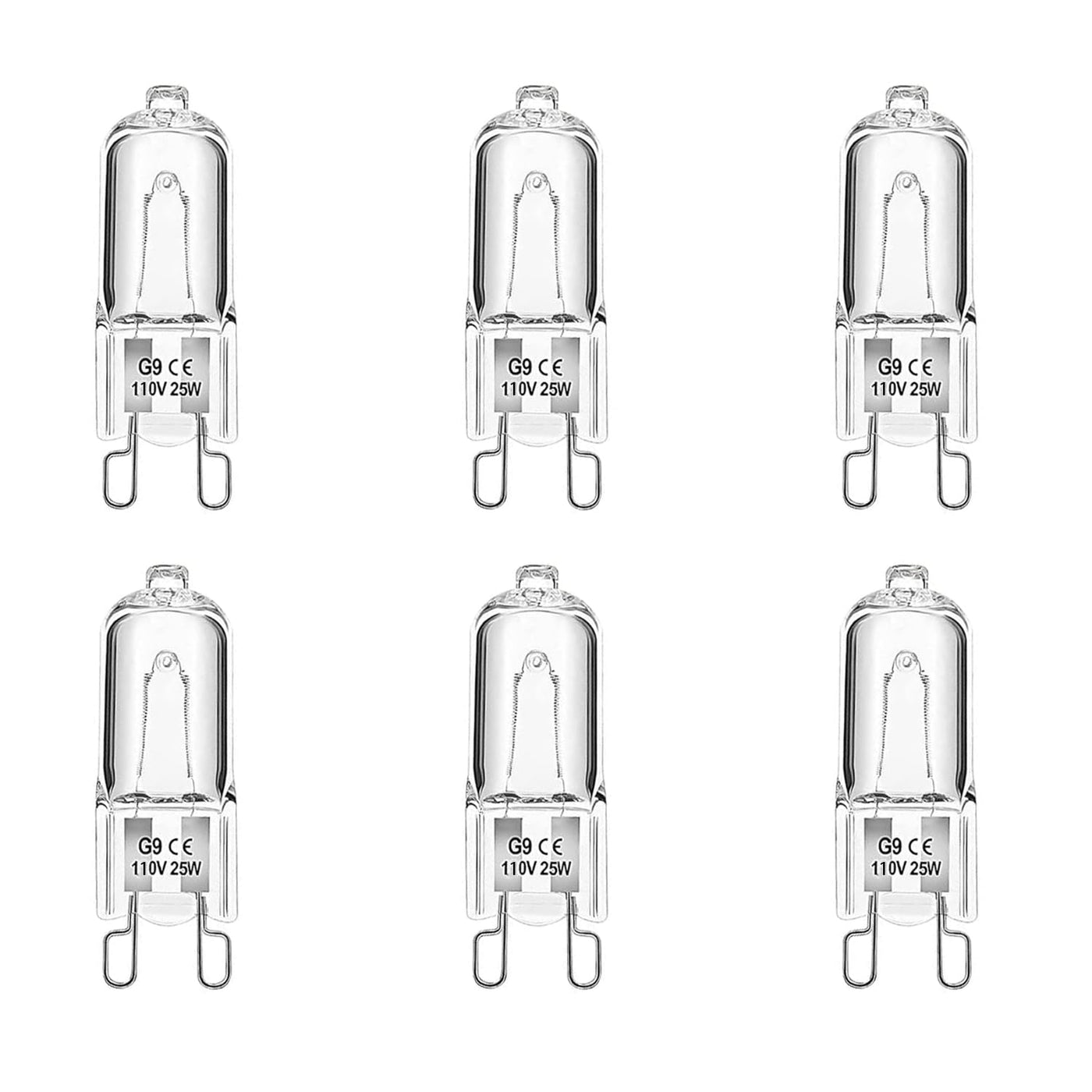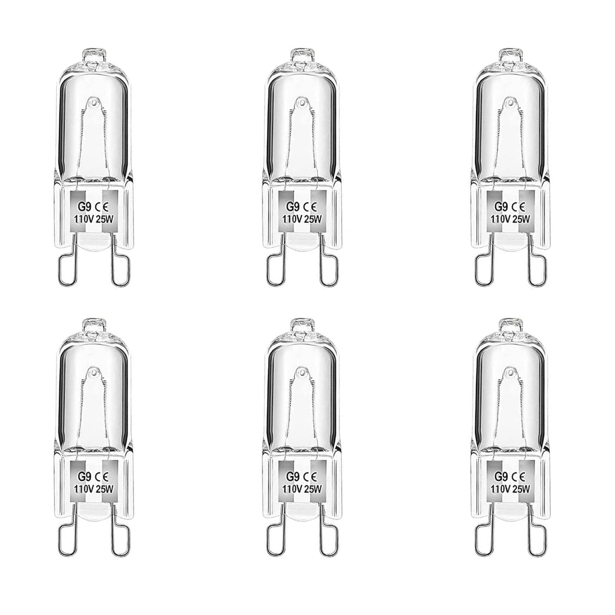 Taodan 6Pcs G9 Halogen Bulb 25W Jcd Halogen Home Bulb Dimmable Tungsten Small Bulb G9 Bi Pin Bulb T4 Bi Pin Type For Crystal Cha