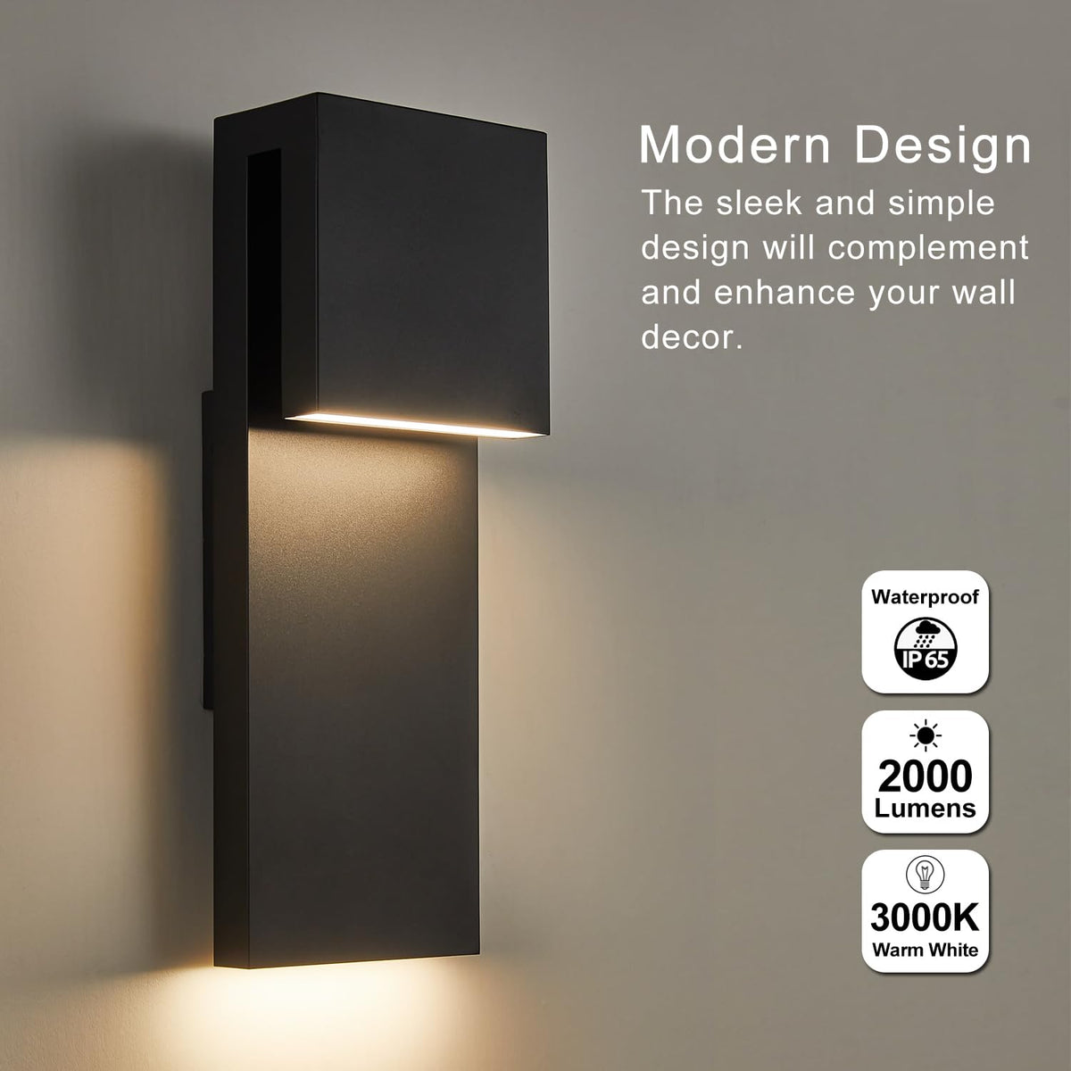 Tarentlight Modern Led Outdoor Wall Sconce 3000K 17W Integrated Led Outdoor Wall Mount,Anti Rust Textured Black Suit For Wet Locations And Easily Installed In Any Direction.Bulb Included.