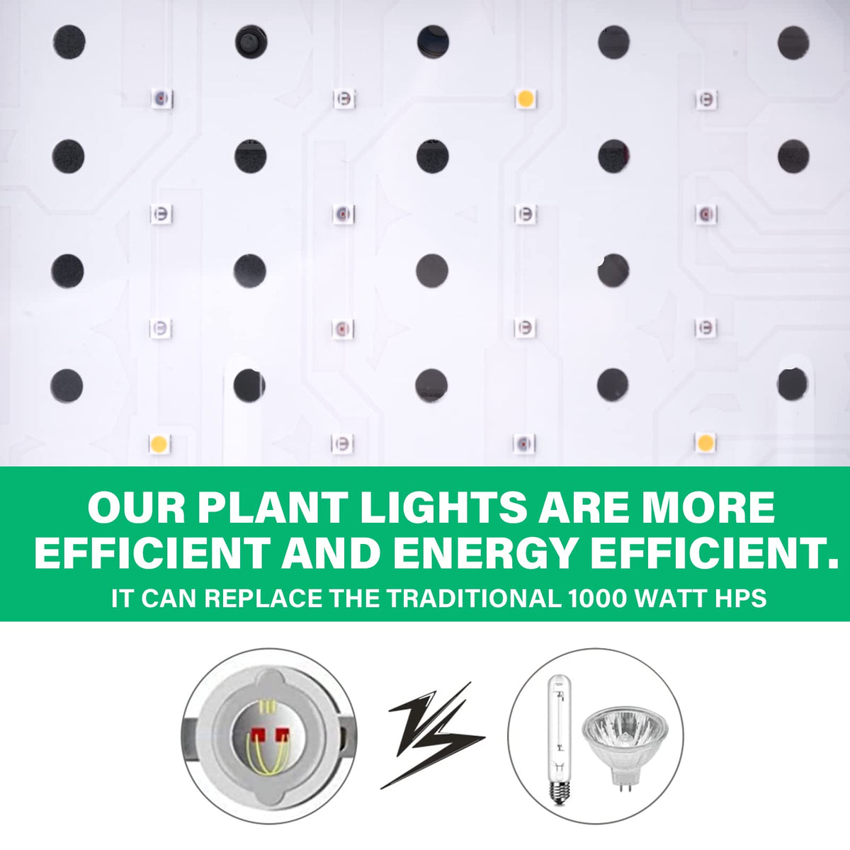 Q: How does the energy efficiency of this LED grow light compare to traditional HPS lights?A: Unlike traditional HPS lights, the TATU LED grow light utilizes advanced LED technology that minimizes light loss and achieves up to 90% light utilization. This high efficiency not only enhances plant growth but also significantly reduces energy consumption.