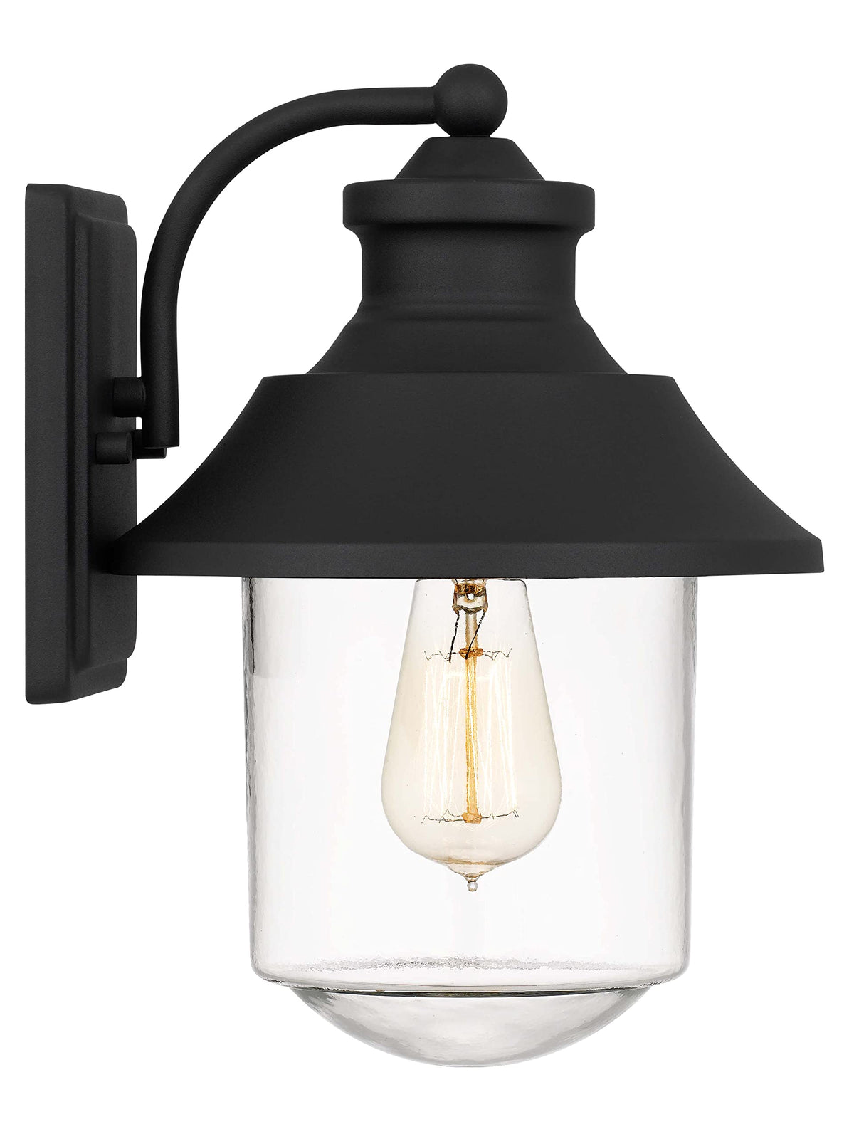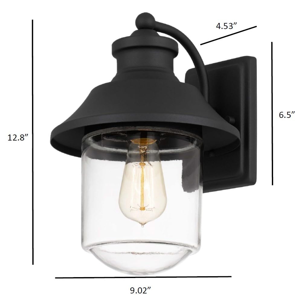 Tawson Abel Outdoor Wall 1-Lights Exterior 9.8" W Lantern Fixtures With Clear Glass Shade Cylinder, Matte Black Wall Sconce, Weather Resistant For Entryway, Doorway, Corridor