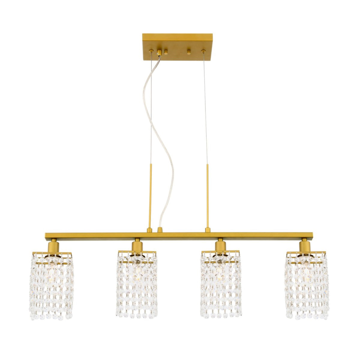 The Taylor collection pendant lamp in a brass finish is evocative of a glamourous era of sparkling jewels, shimmering champagne, and brilliant laughter and conversation that surely danced through the halls. The sparkling crystals are draped over the shimmering lights, whose brilliant illuminations dance its way throughout your rooms. Whether you allow for this 4-light pendant to charismatically greet your beloved guests in the foyer or living room--you can't go wrong. Proposition 65 WARNING: This product can expose you chemicals including lead and lead compounds, which are known to the State of California to cause cancer and birth defects and other reproductive harm.. For more information go to: www.P65Warnings.ca.gov.