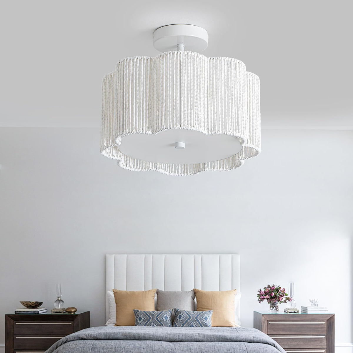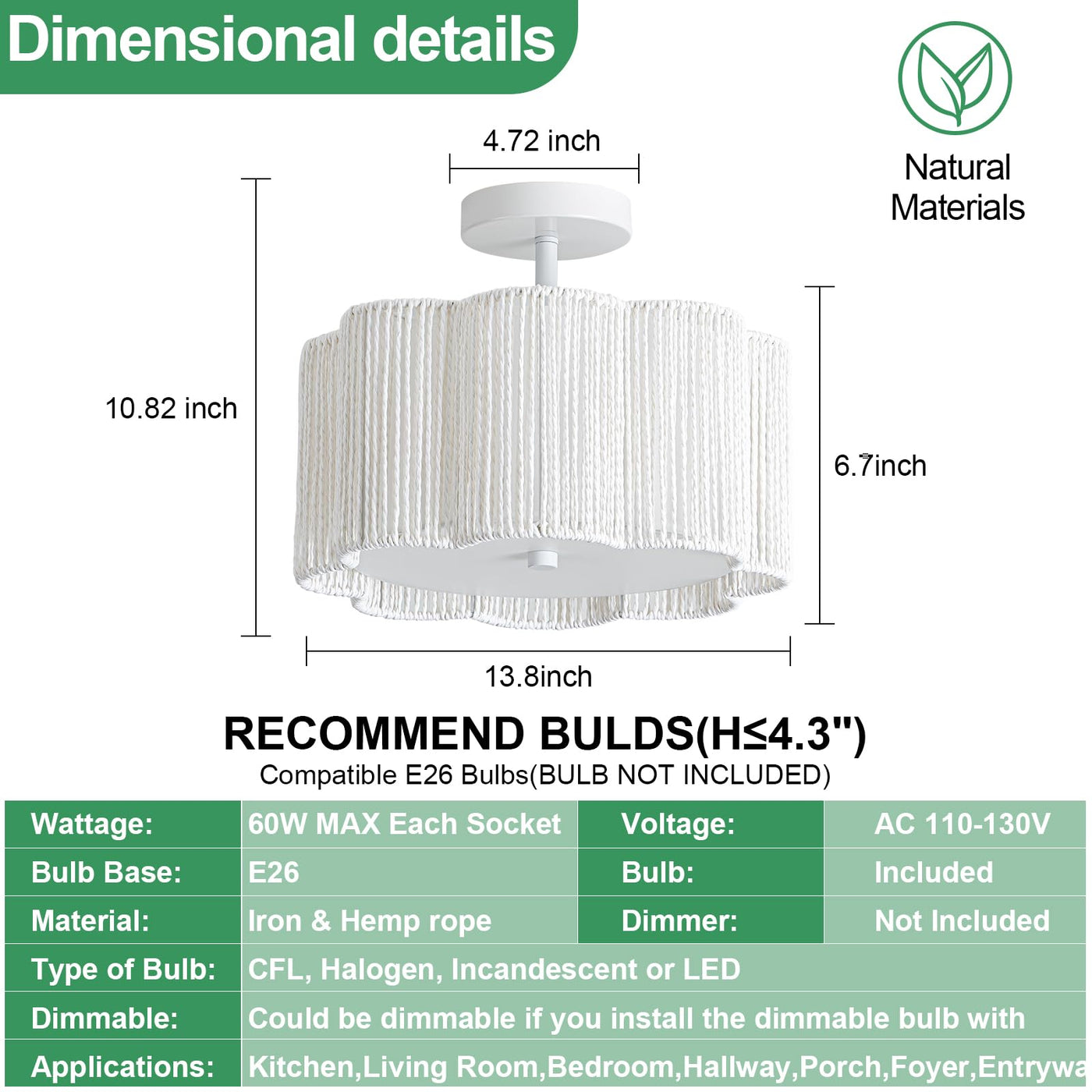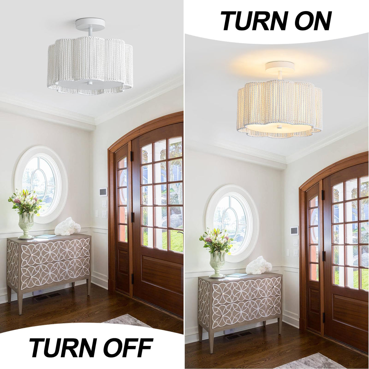 Tbaoinla Boho Light Fixture & Rattan Ceiling Light - Snow Blossom Flush Mount With Desert Moon Textures, White Woven Design For