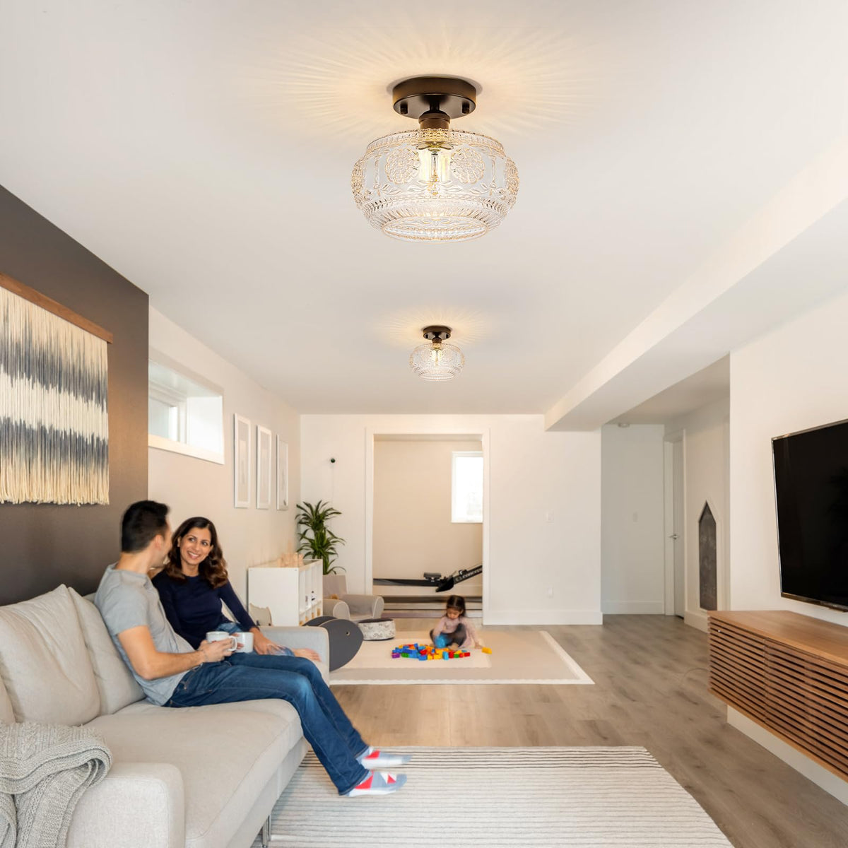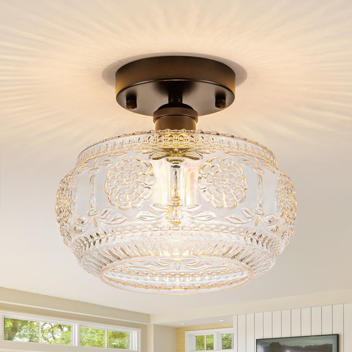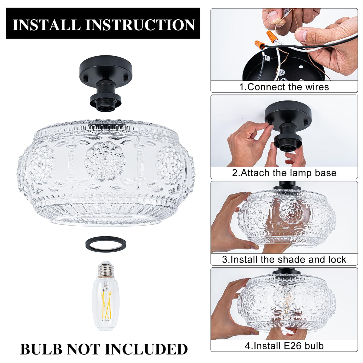 Transform Your Space With The Semi Flush Mount Ceiling Light Fixture Marrying Artisan Floral Glass And Luxe Black Metal For A Bold Yet Timeless Look. The Semi-Recessed Design Saves Space In Low Ceilings While Casting Romantic Floral Shadows When Illuminated. Ideal For Entryways Bathrooms Kitchens Or Bedrooms Its E26 Bulb Compatibility (Sold Separately) Lets You Customize Brightness And Warmth. Quick To Install Easy To Maintain And Built To Last This Black Light Fixture Adds Sophistication To Any Modern Or Vintage-Inspired Room.
