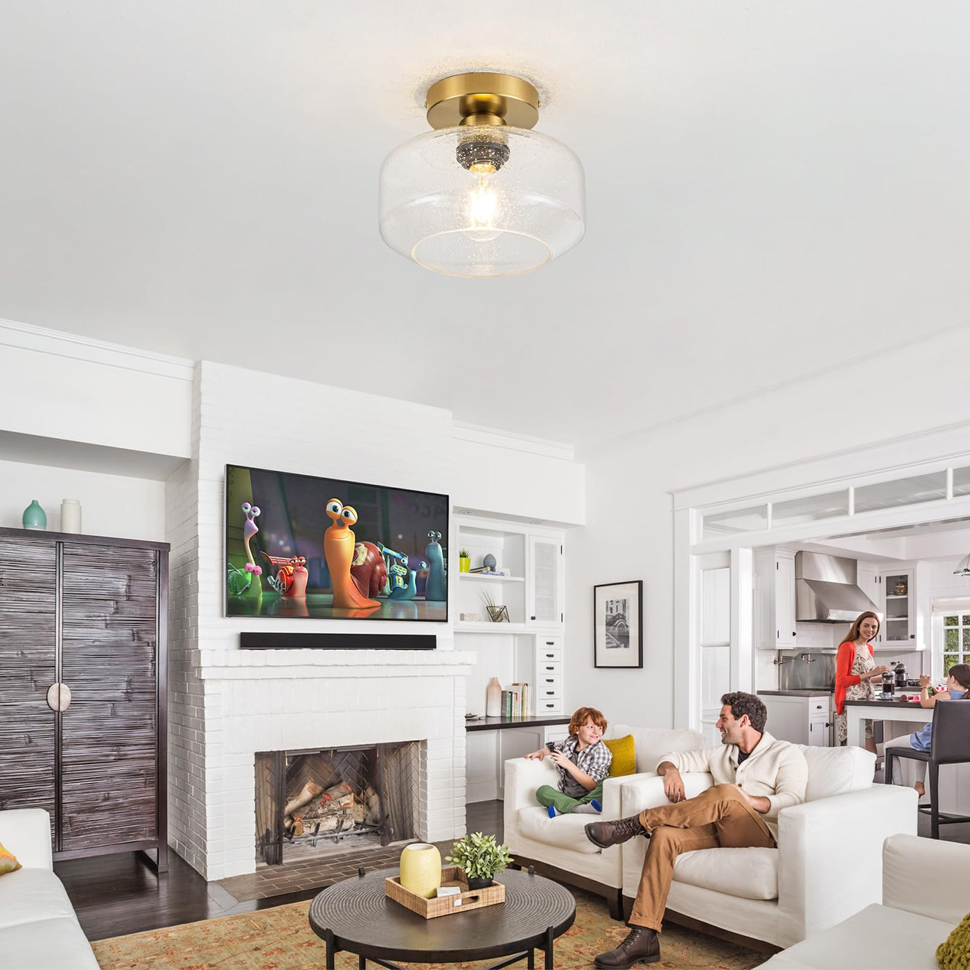 Tbaoinla Simple And Elegant Semi Flush Mount Ceiling Light Seeded Glass Brass And Golden Metal Base Includes 900 Lumen Led Light