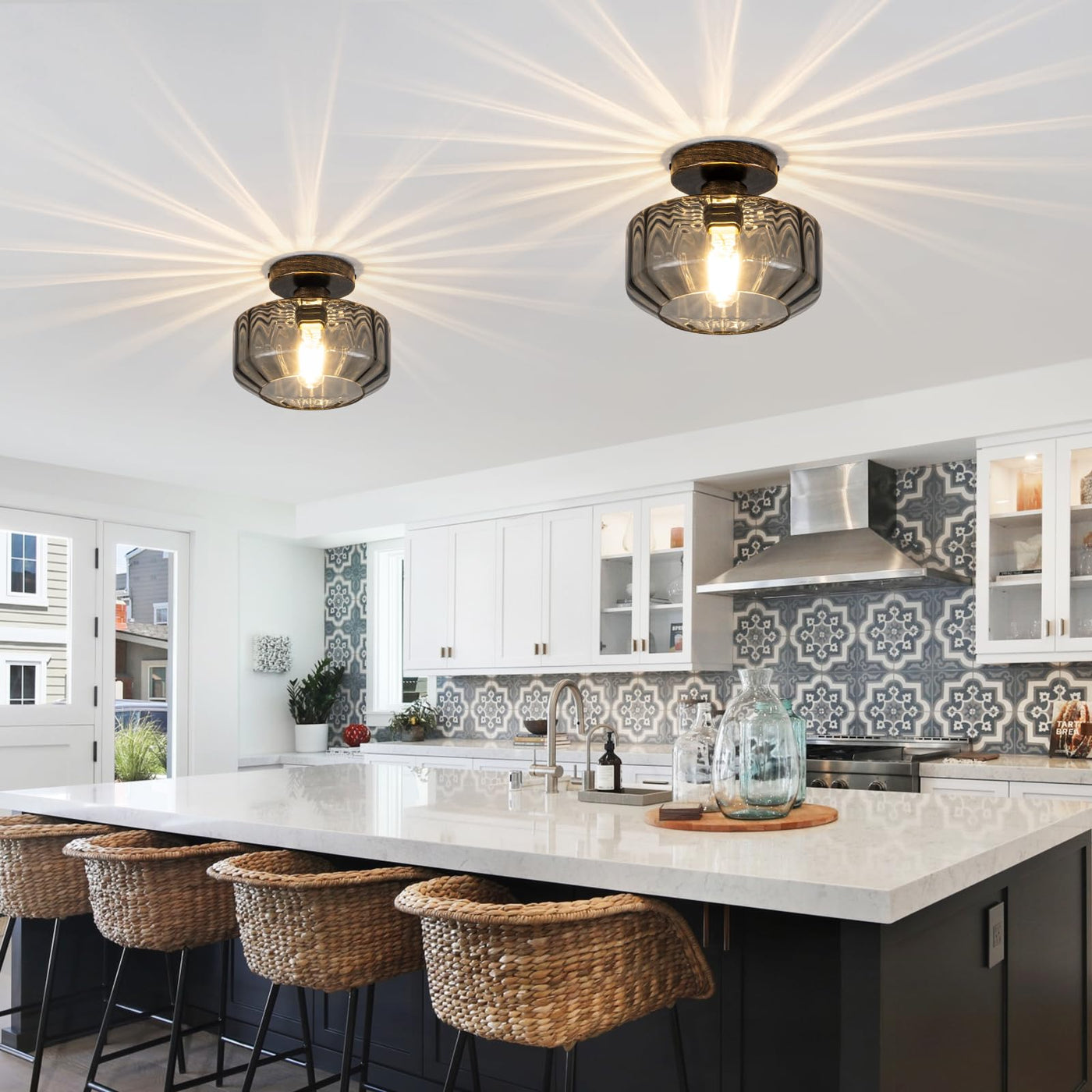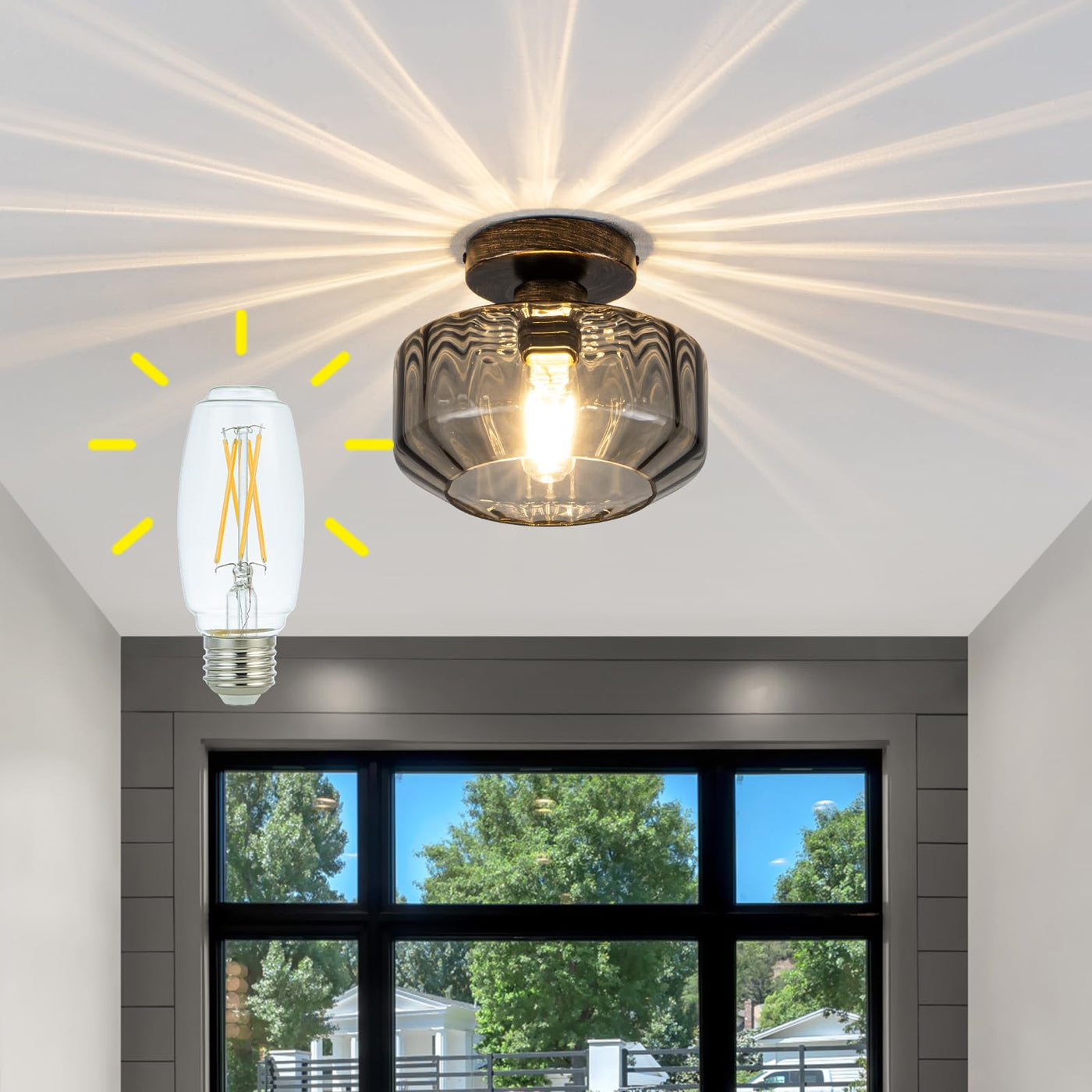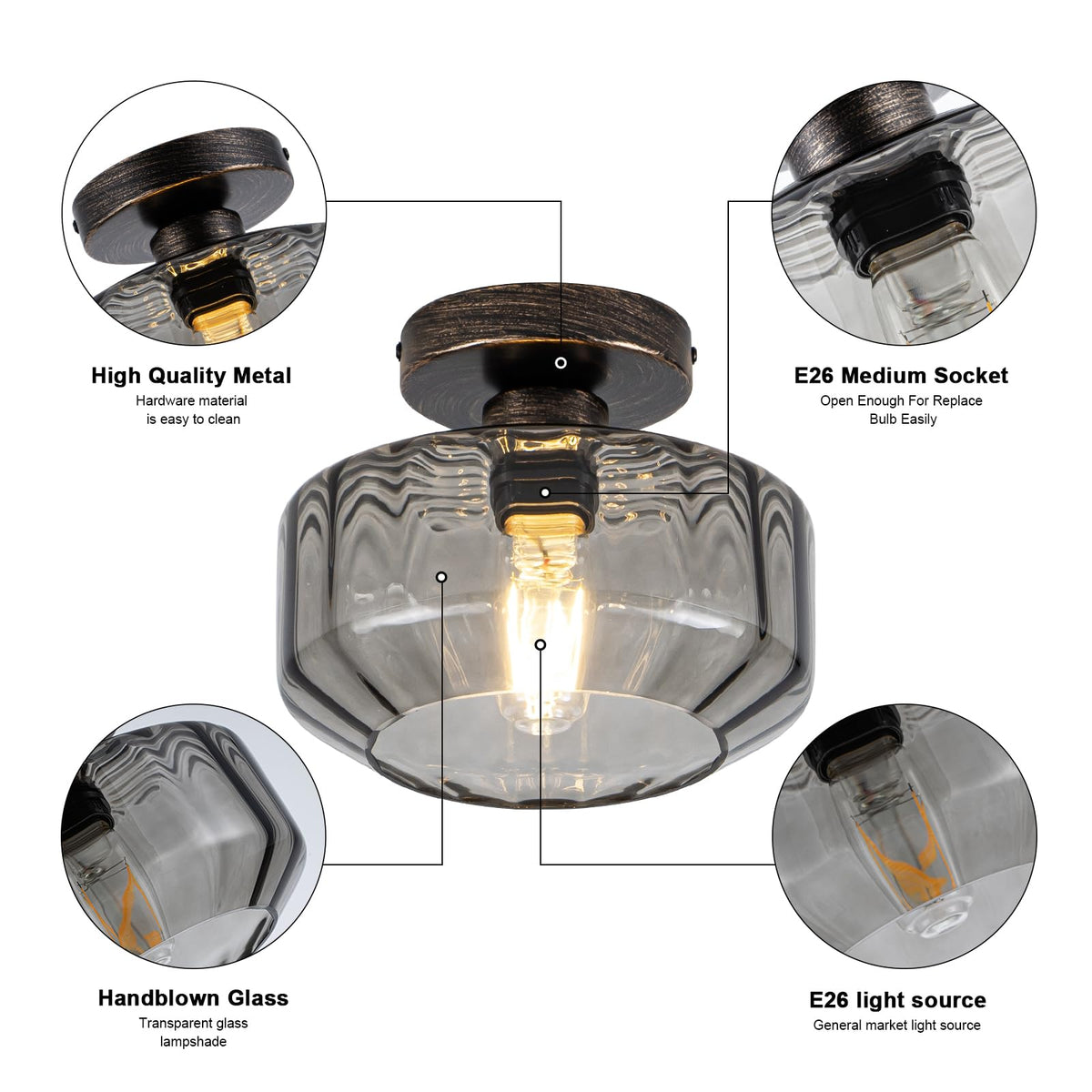 Elevate Any Space With Artistic Illumination Command Attention In Modern Interiors With Our Dual-Tone Ceiling Light-Where Industrial Precision Meets Artisan Elegance. The Sleek Black Base Contrasted With Brushed Champagne Gold Accents Forms A Sculptural Centerpiece While Hand-Blown Smoky Tinted Glass Refracts Light Through Precision-Angled Prisms. These Meticulously Textured Surfaces Cast Diamond-Shaped Beams Across Your Ceiling (1200 Lumens Warm 3000K White) Bathing Rooms In Moody Gallery-Worthy Ambiance. Engineered For Discerning Spaces Like stylish Condos And Urban Lofts Its Ultra-Slim 8.66 Diameter (2.76 Height) Low-Profile Flush Mount Defies Cramped Ceilings. The Ip44-Rated Corrosion-Resistant Alloy Withstands Humid Kitchens/Bathrooms While Tool-Free Magnetic Installation Delivers One-Click Maintenance. Ul Damp Location Certified And Backed By A 24-Month Warranty-This Is Enduring Sophistication Redefined.