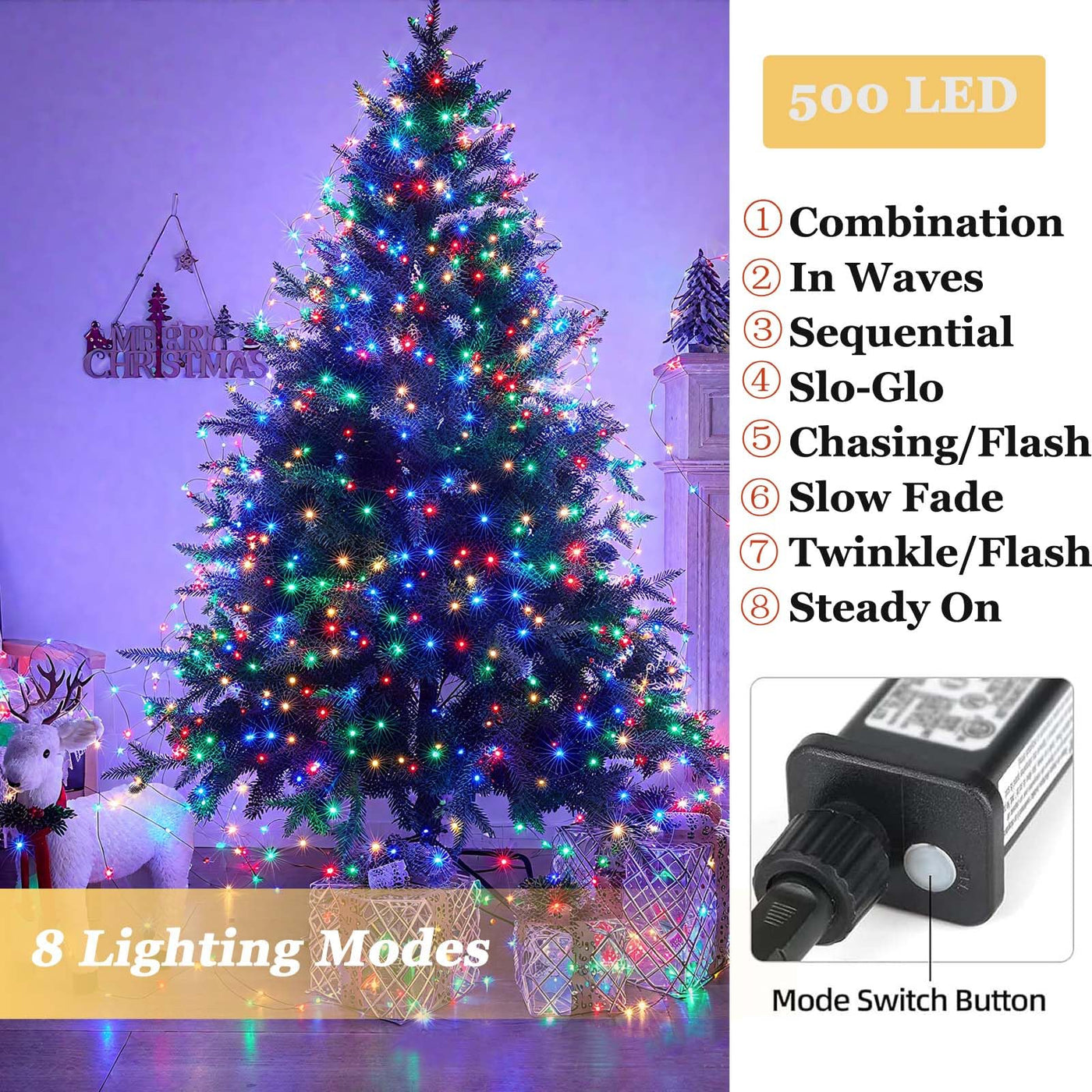 Tcamp 164Ft 500 Led Christmas Lights Outdoor, 8 Modes Christmas Tree Lights With Timer Memory Function, Green Wire Fairy String