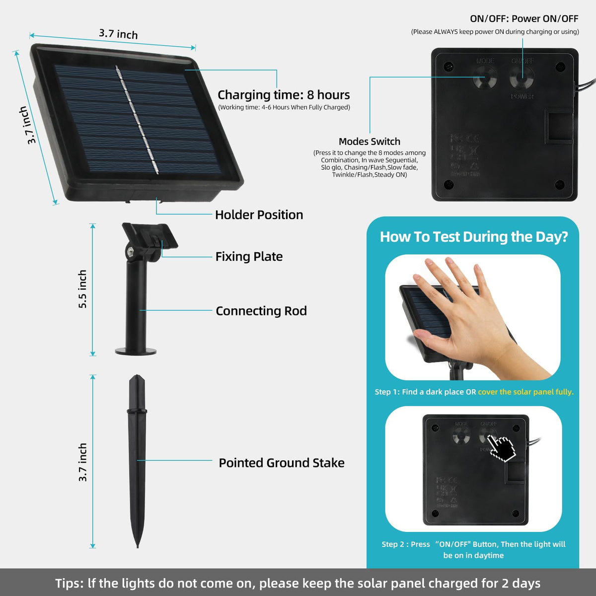 Tcamp 33Ft 100Led Solar Christmas Lights Outdoor Waterproof Solar Outdoor String Lights With 8 Lighting Modes Memory Function For Xmas Tree Wedding Party Garden Decorations (Warm White)