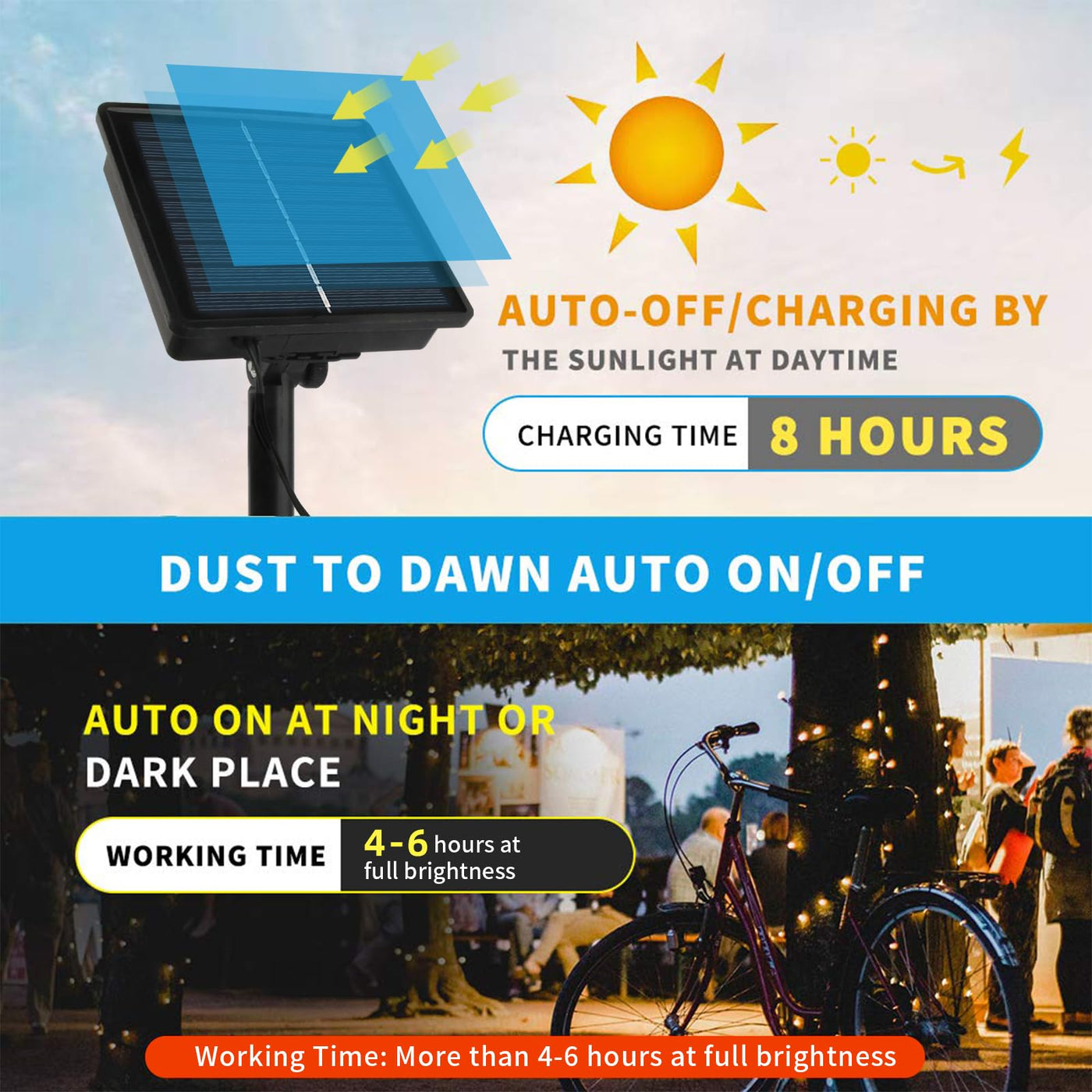 Tcamp 66Ft 200 Led Solar Christmas Lights Outdoor Waterproof 8 Modes Solar Powered Fairy String Lights For Christmas Tree Wedding Party Holiday Outdoor Indoor Decor (Warm White)