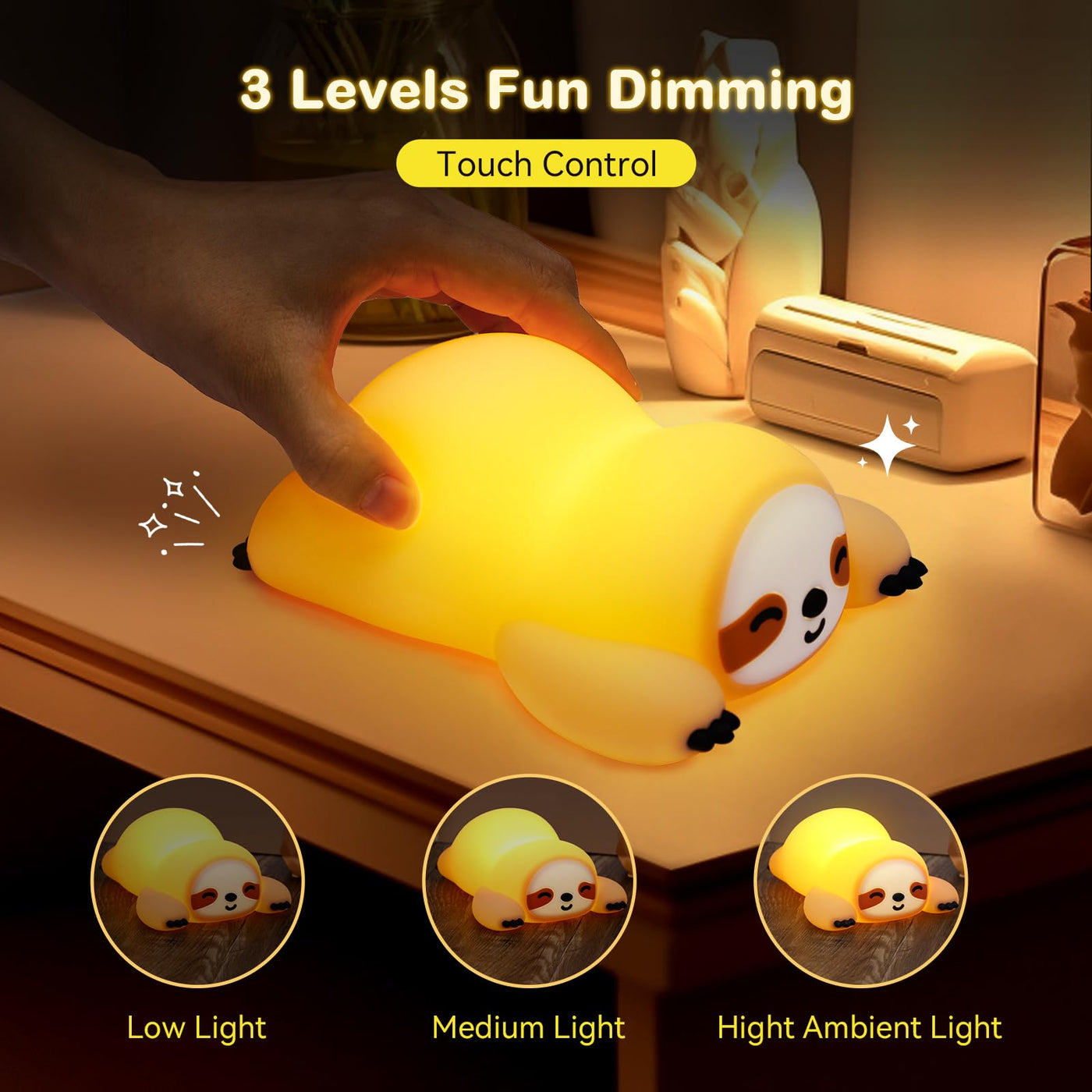 TCMOT Cute Sloth Night Light for Kids, 3-Level Dimmable Nursery Nightlight, Silicone Squishy Light Up Sloth Gifts, Rechargeable