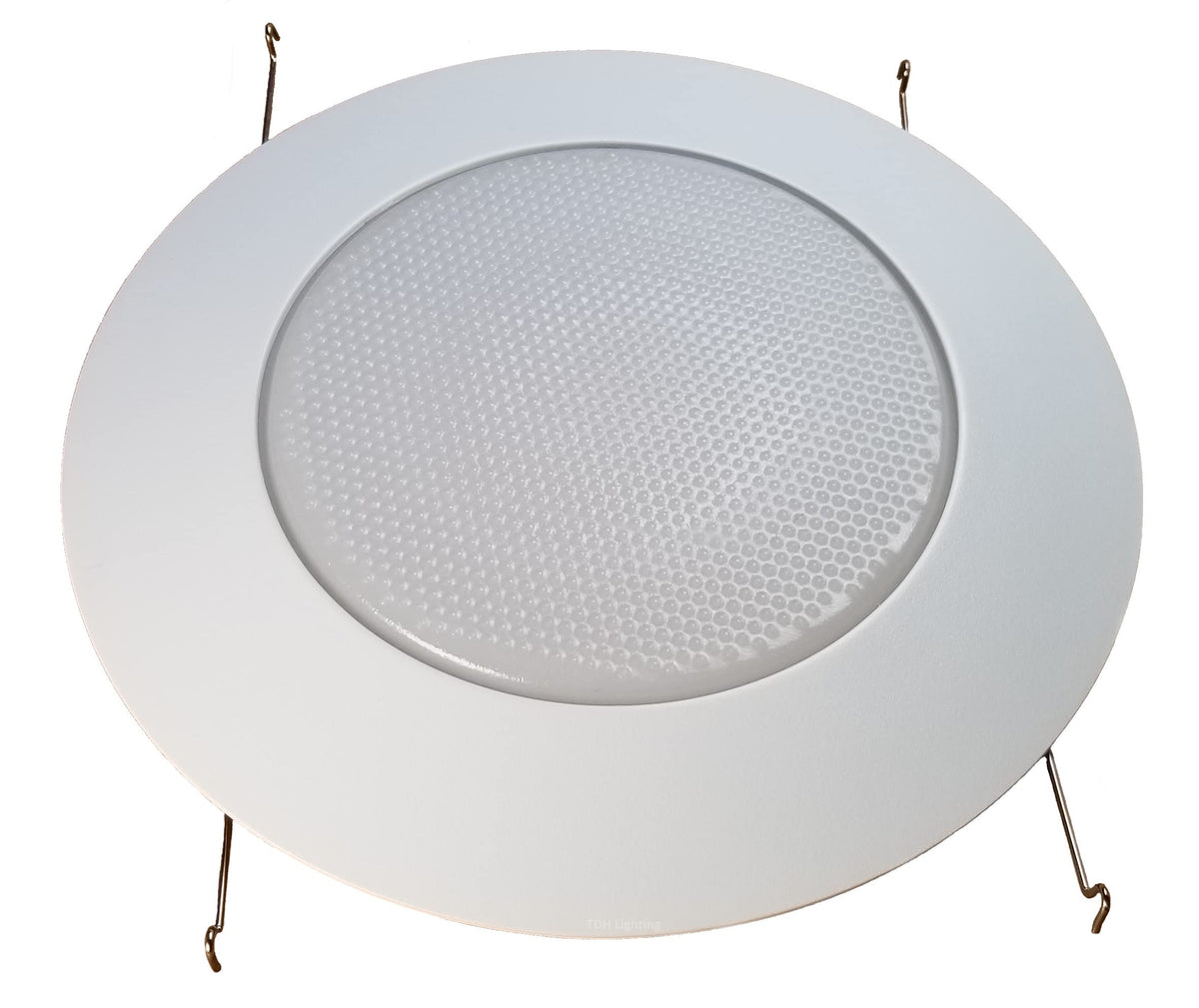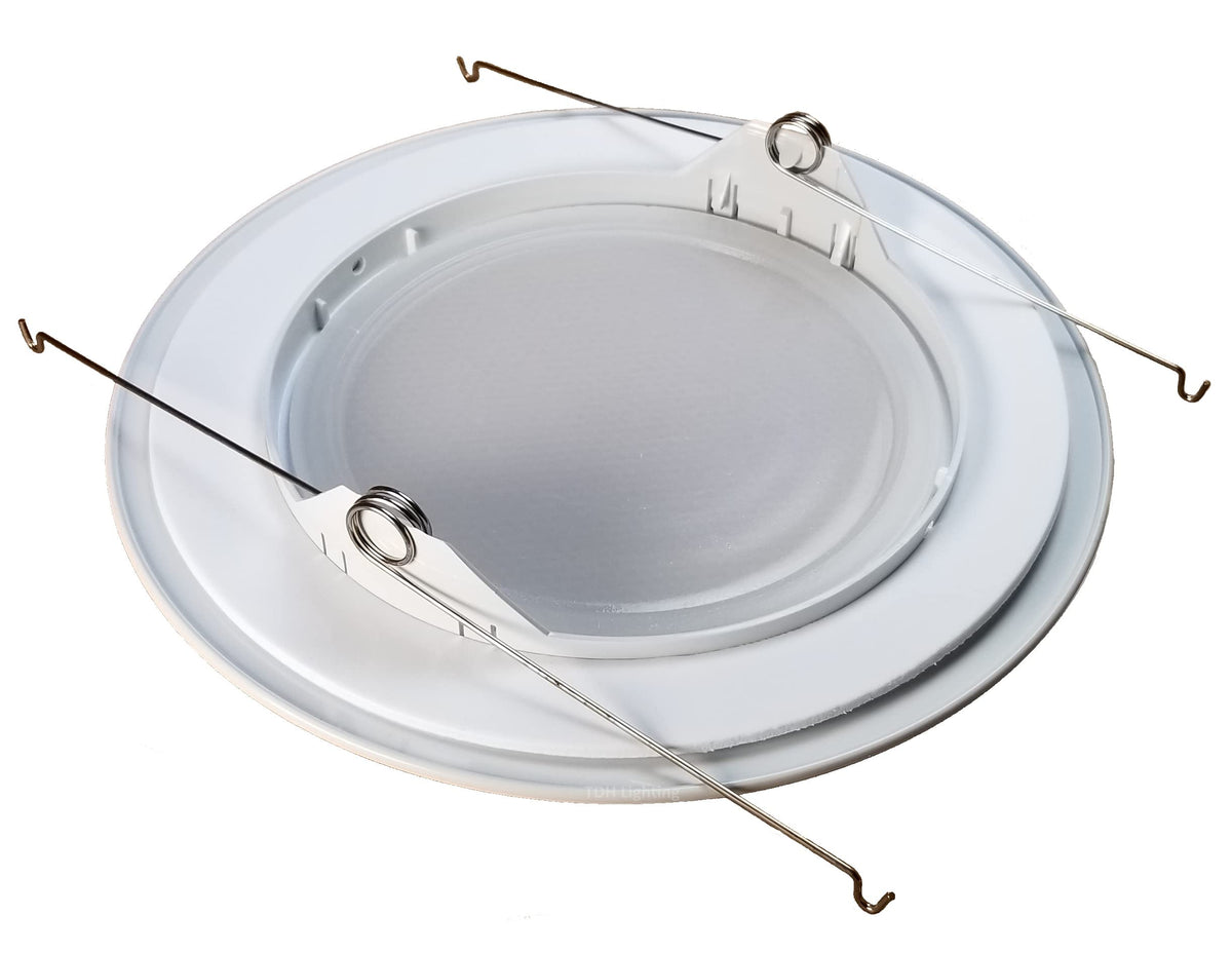 For showers and other areas requiring wet location rating to keep the interior of the trim and housing dry and rust-free. | Fits on 6'' fixture housing cans; Outer Diameter (around trim): 8'', Inner Diameter (Around Glass): 5-1/4''. | Clear Fresnel Glass with White Trim Made of Heavy-Duty, Waterproof and rustproof plastic. | Comes ready-to-install with the mounting clips attached. No extra parts required.